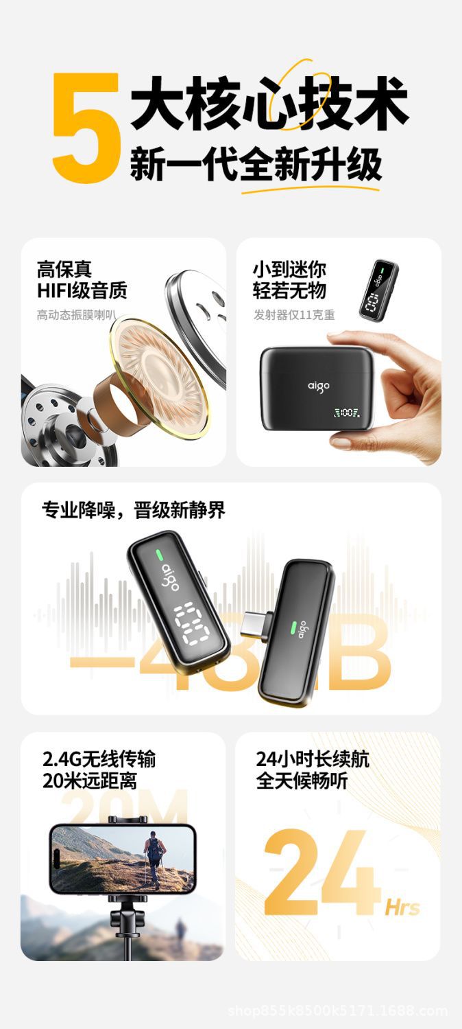 Douyinの人気プライベートモデルA5ワイヤレスラベリアマイクデュアルインターフェース海外地域販売スーパーソース工場