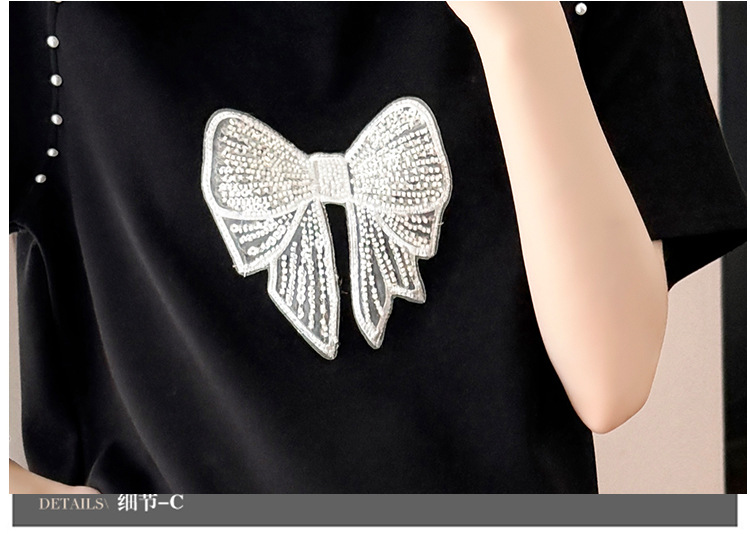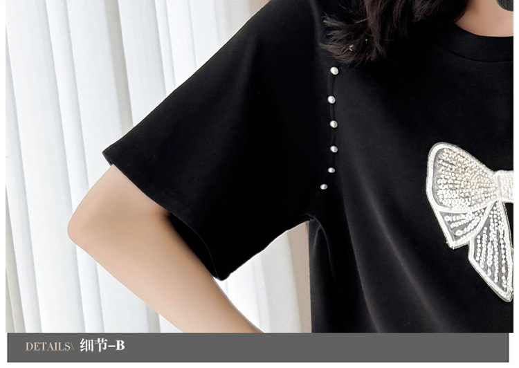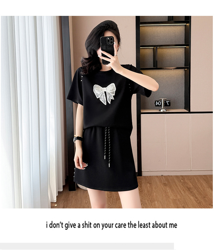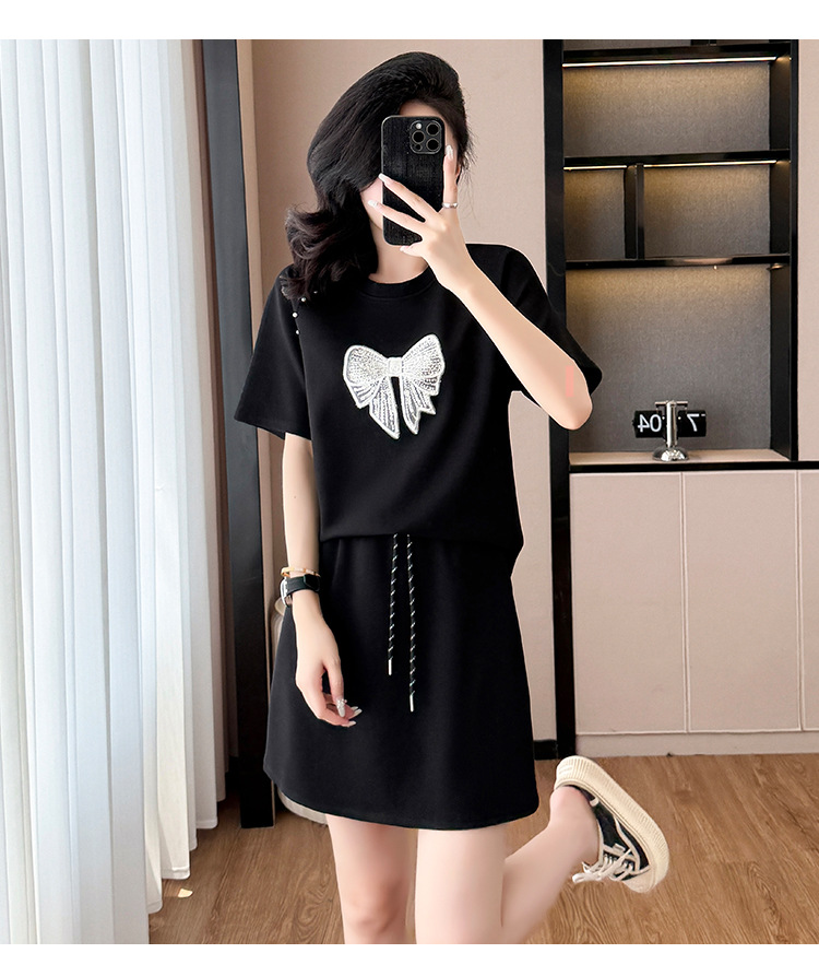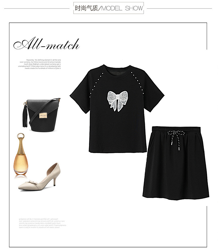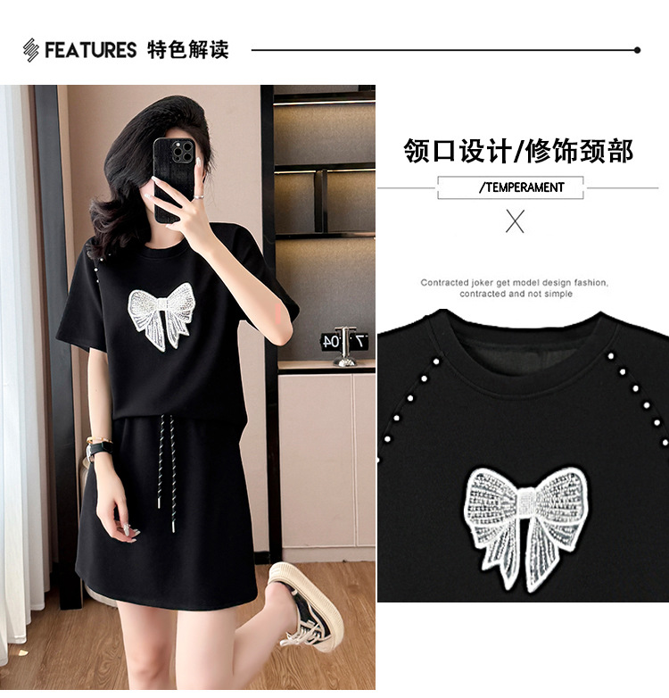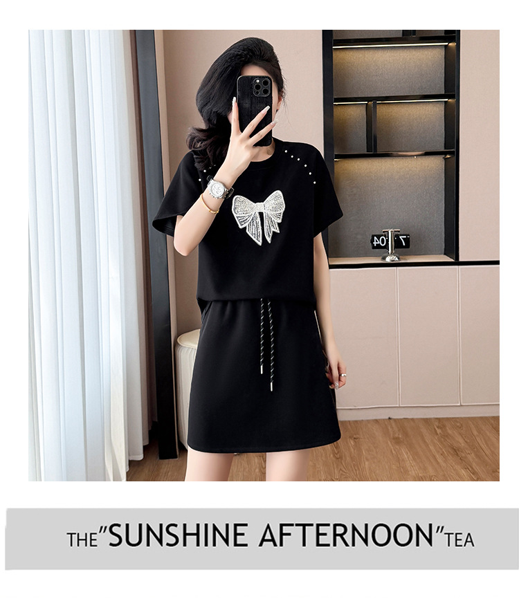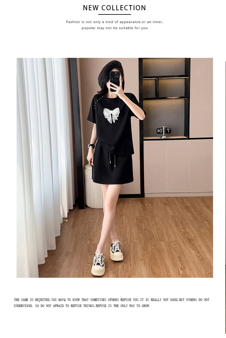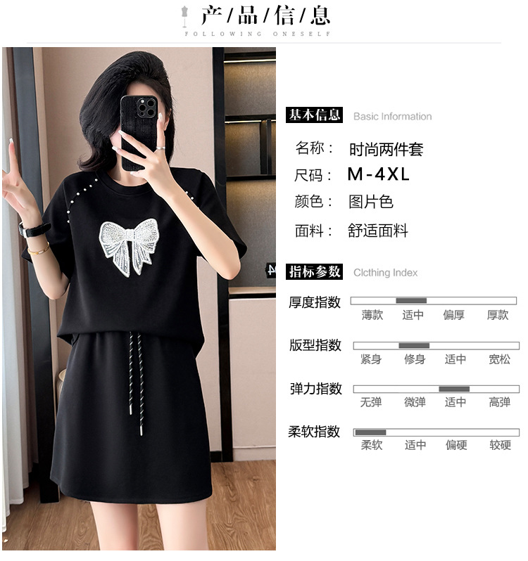 hymwl9914 重工業ビーズルーズスーツ女性の 2025 夏スポーツカジュアル Tシャツ黒ショートスカート 2 点セット