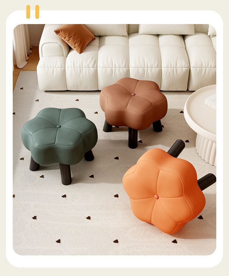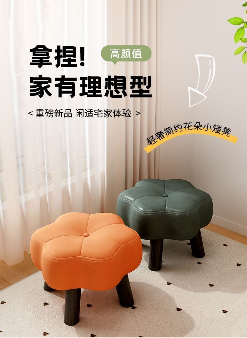 低スツール無垢材フラワークリエイティブスツールシンプルな玄関靴交換スツールソファコーヒーテーブルソフトパッケージベンチ家庭用子供用スツール