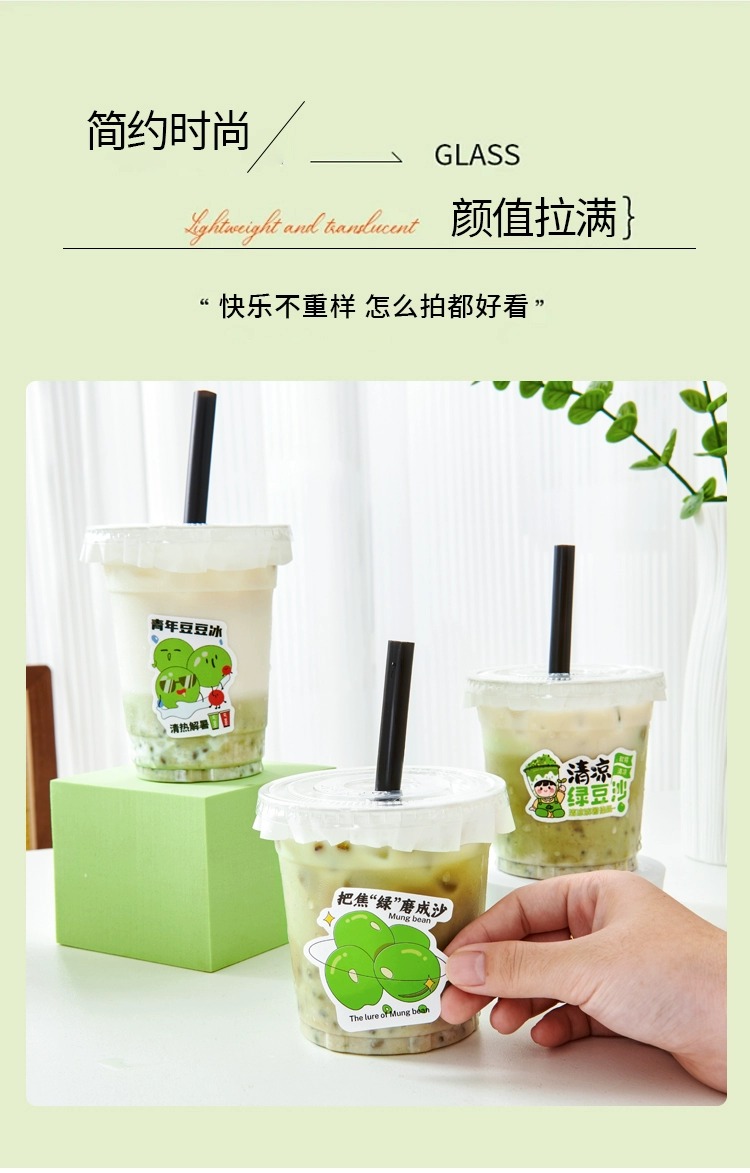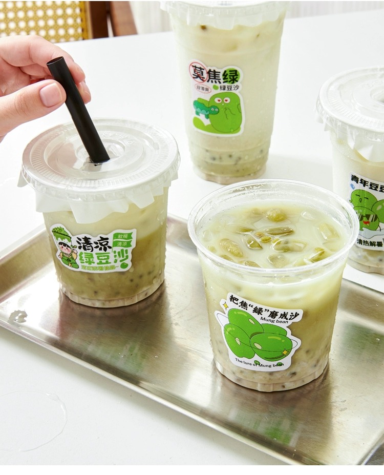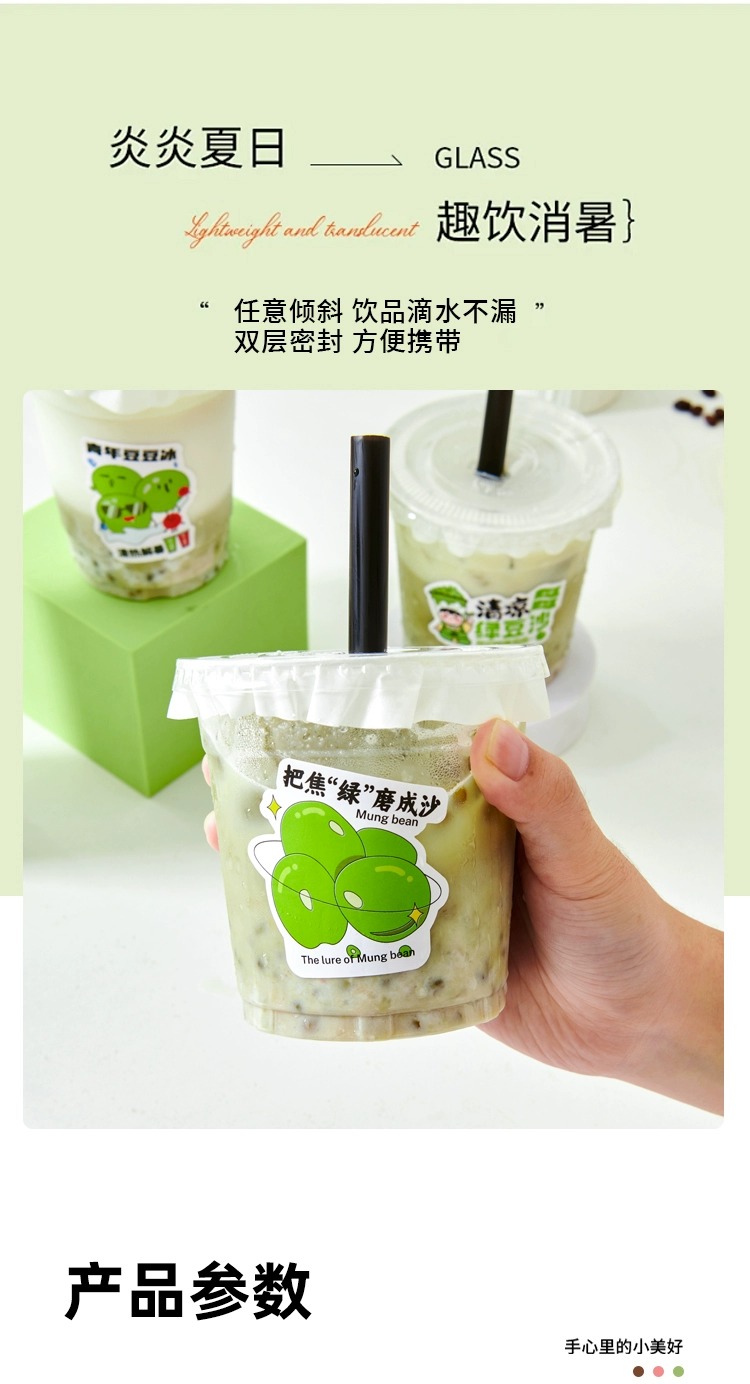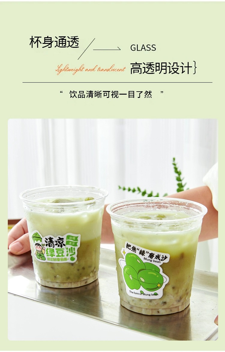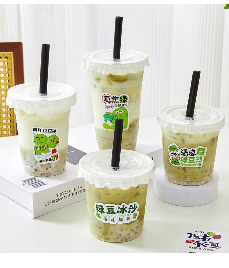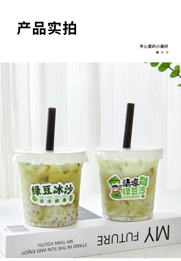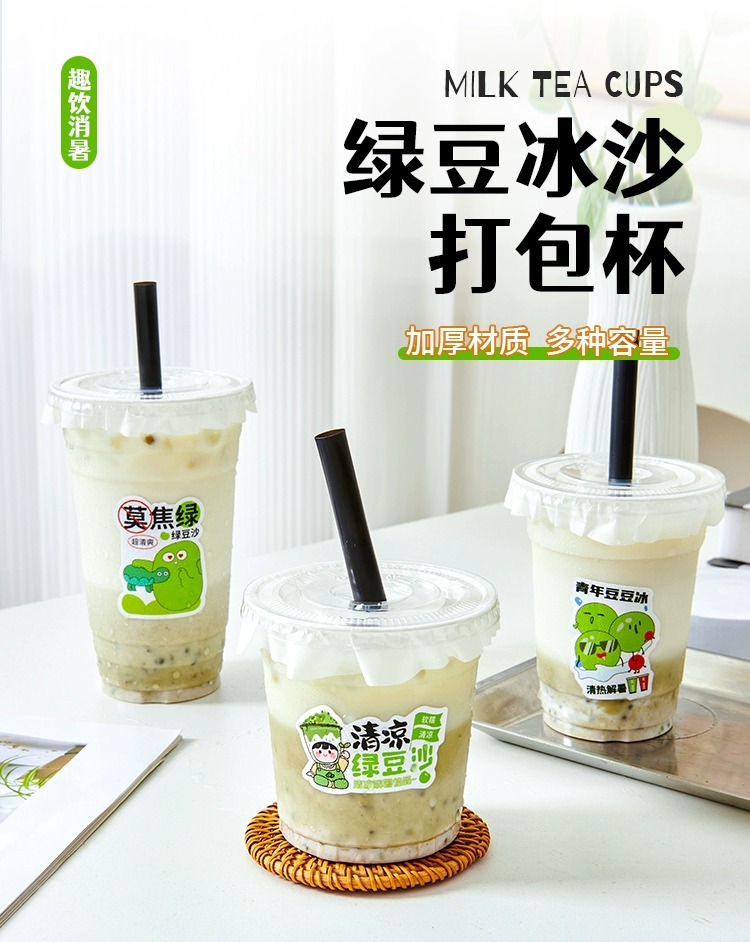 绿豆沙杯子一次性摆地摊带盖牛乳绿豆冰沙打包杯商用绿豆汤杯子