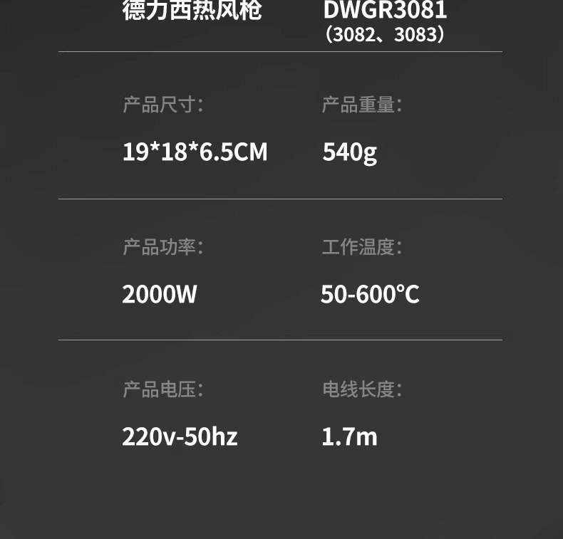 德力西数显热风枪贴膜便携烘枪调温热风机工业热缩膜吹风机风枪