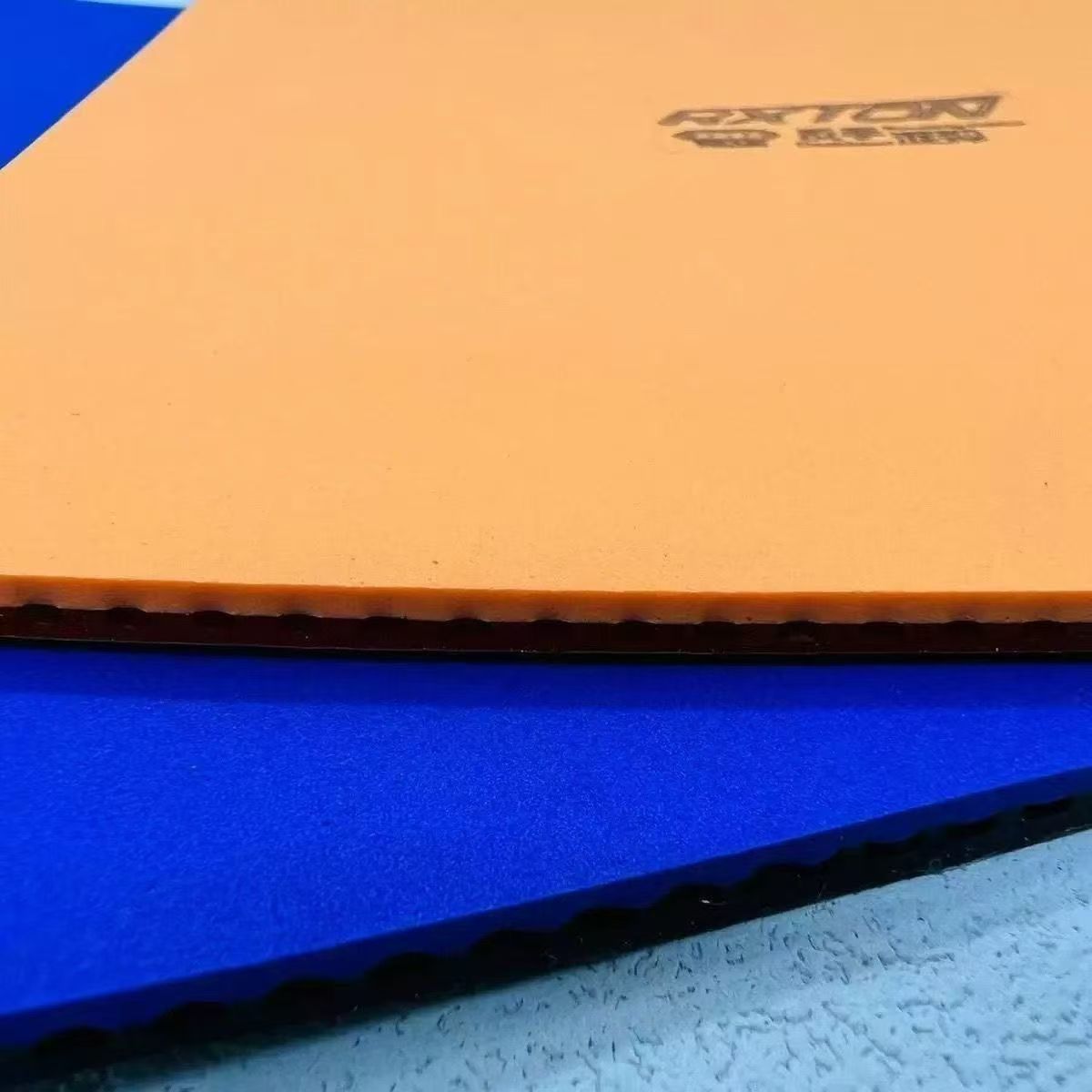 ドイツの日光卓球ラケットのスポンジはゴムの皮の青い緑のスポンジを拭いて黒と赤のオレンジのスポンジを拭きます。