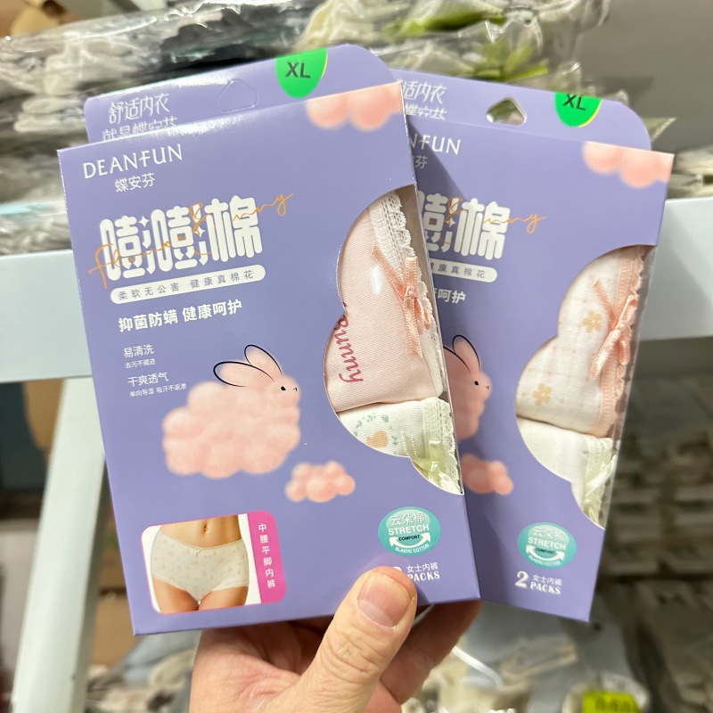 新款蝶安芬女士纯棉内裤2025柔软舒适透气印花中腰纯棉档2条盒装