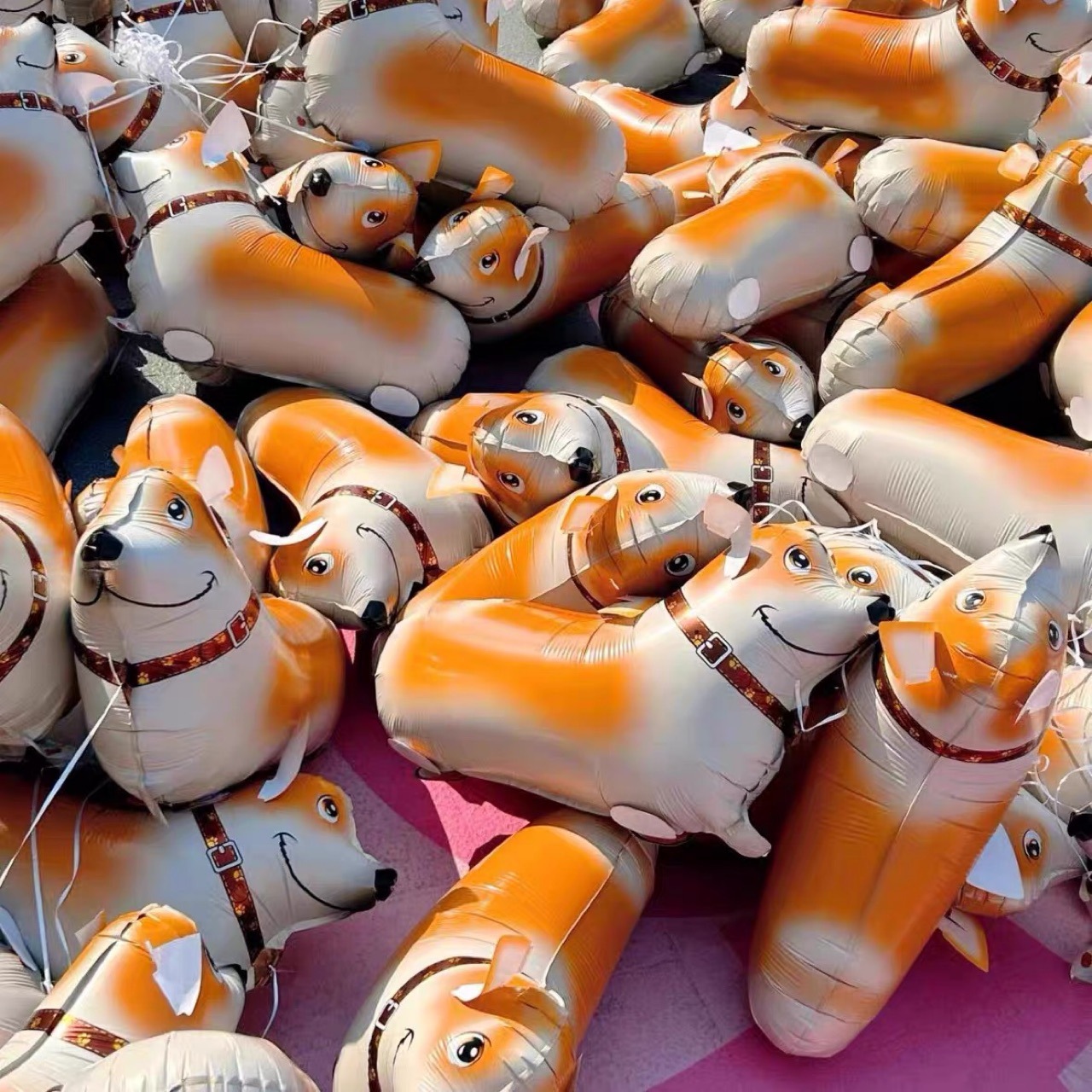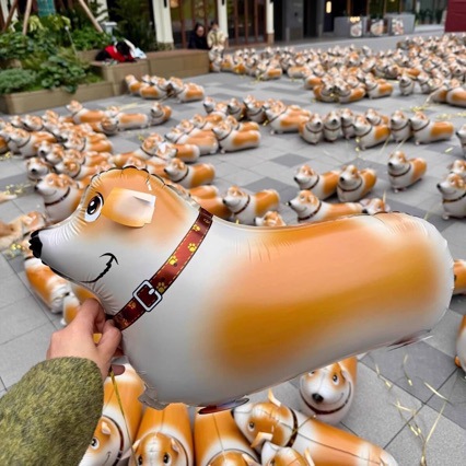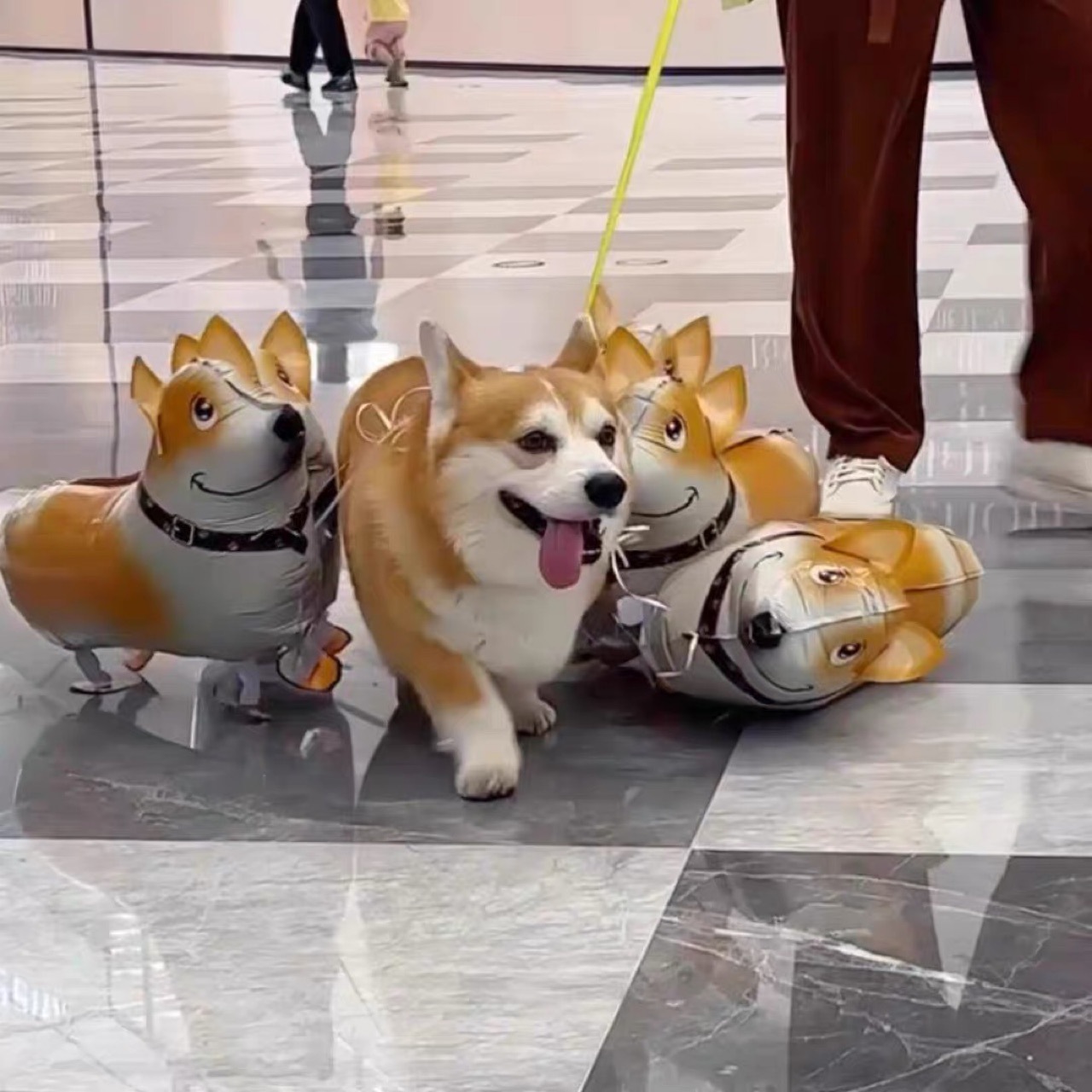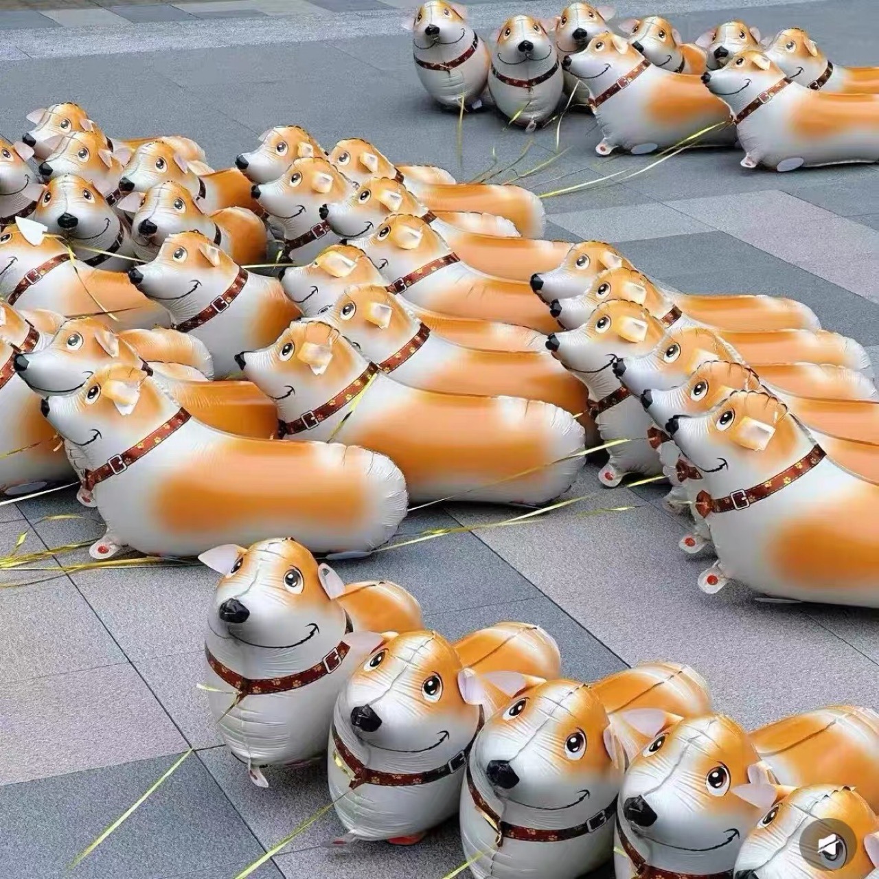 卡通走路气球柯基斑点狗摆地摊牵绳散步站立散步