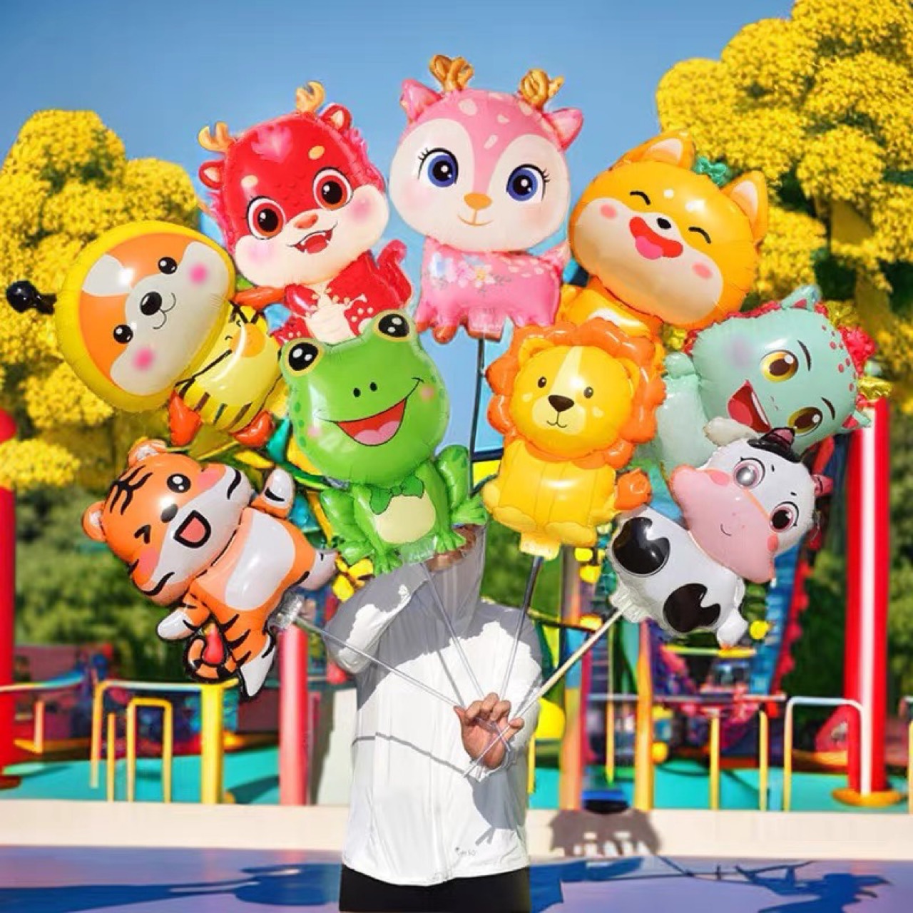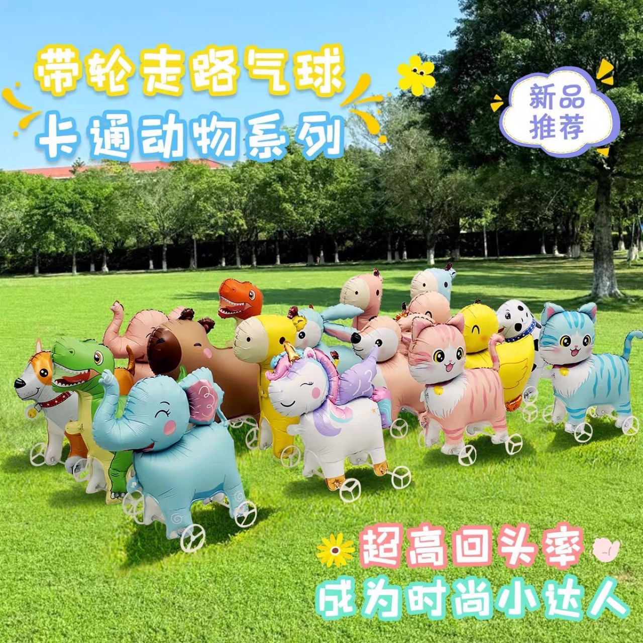 带轮走路站立动物铝膜气球户外滑行走路气球带轮气球派对拍照露营