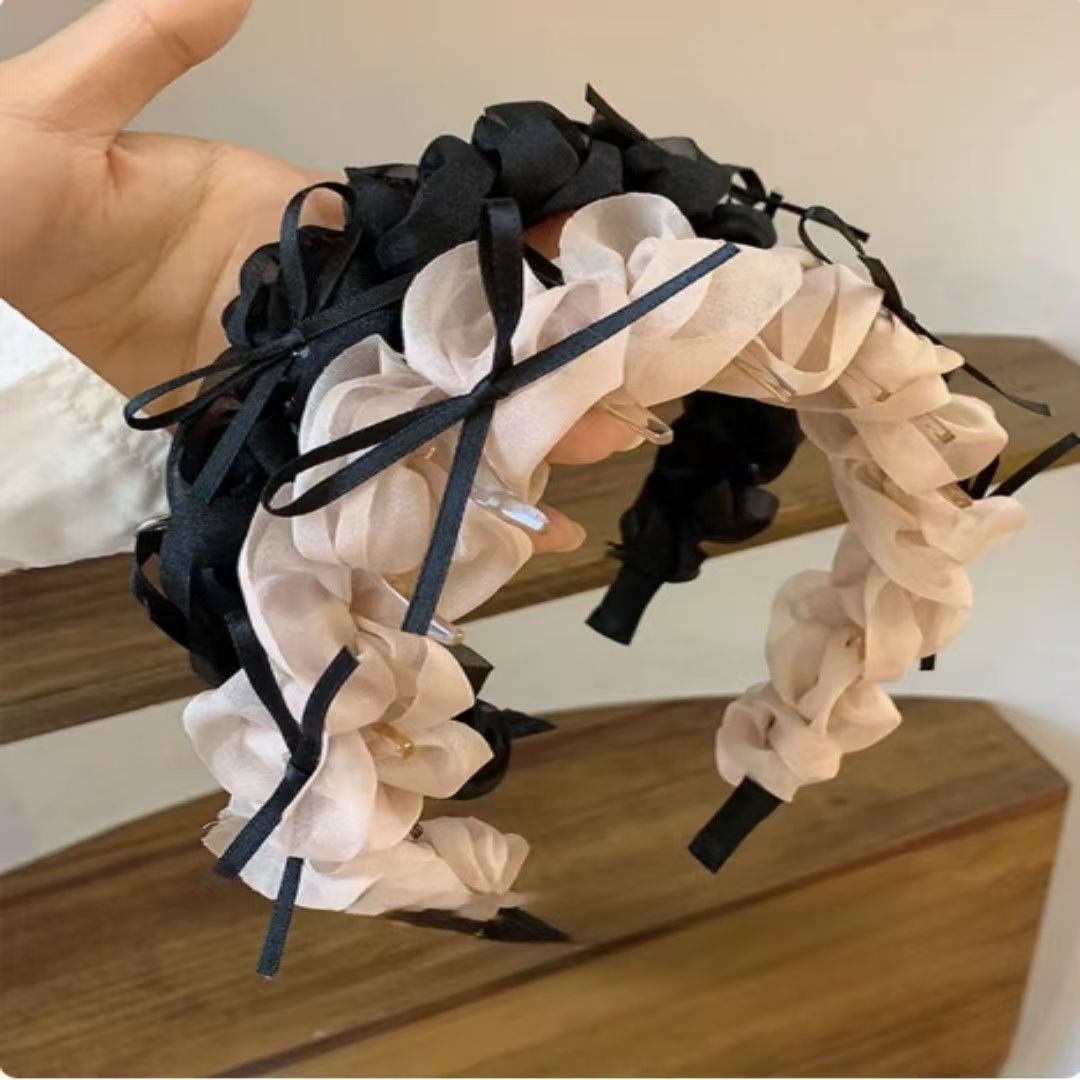 しわの新しいカチューシャのリボンの広いカチューシャの気質の網の糸の高い頭の頂の甘い滑り止めのカチューシャの髪飾り
