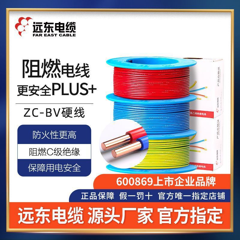 远东电缆100米家用电线国标铜芯1.5/2.5/4/6平方阻燃BV单股硬芯线