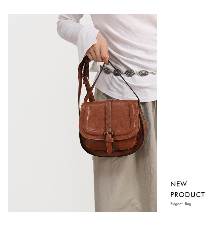 アマゾンの人気香港風レトロなサドルバッグ女性のシングルショルダーバッグ欧米の女性の半円バッグ女性