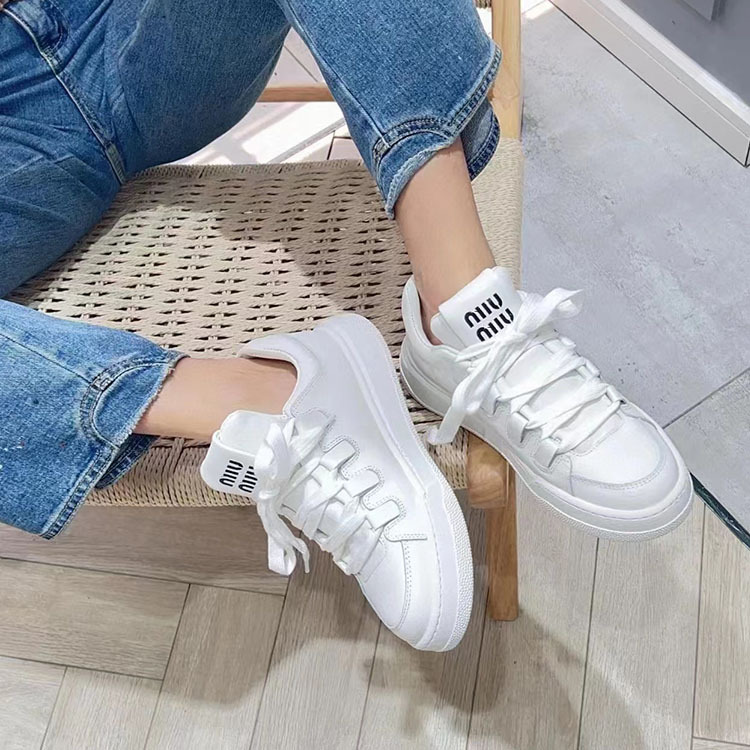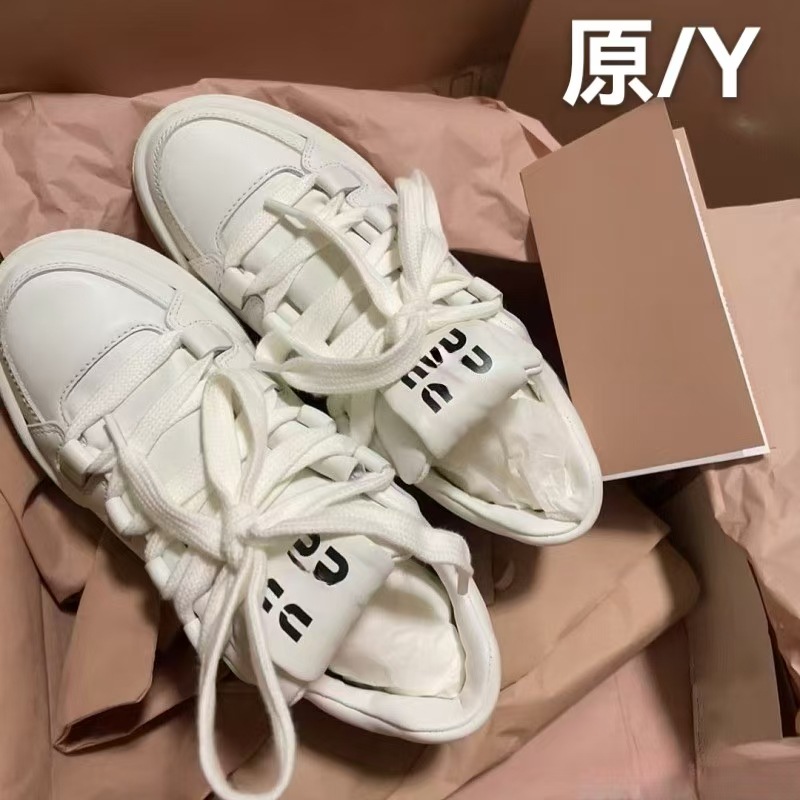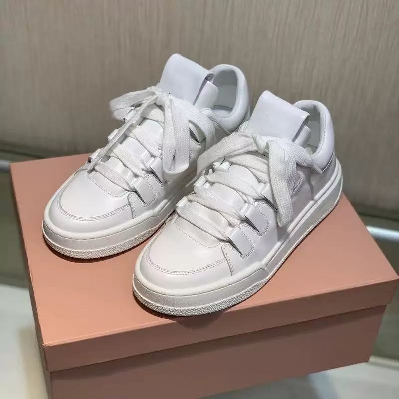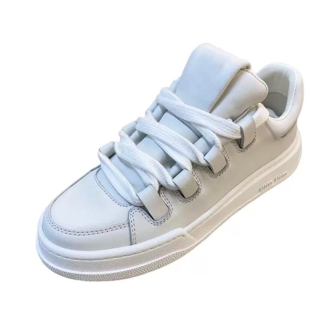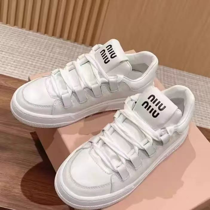 miu ホワイトシューズ女性用 2025 新しい厚底スニーカースポーツとレジャー本革クラシック多用途女性の靴