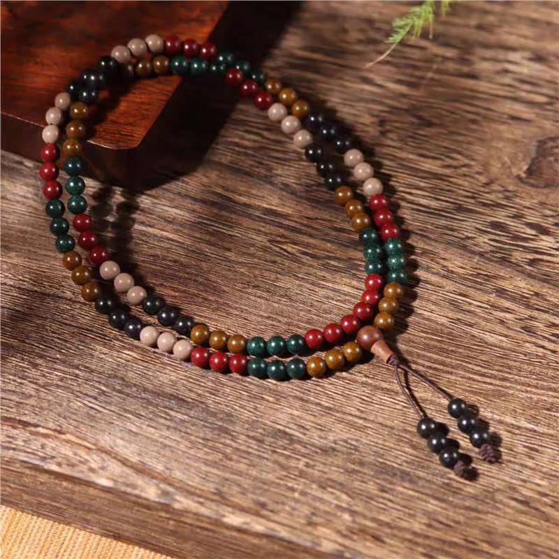 天然五方香ビーズ、漢方薬ブレスレット、古代の方法、長持ちする薬用香り、十八子手持ち数珠、仏教ビーズ、ギフト