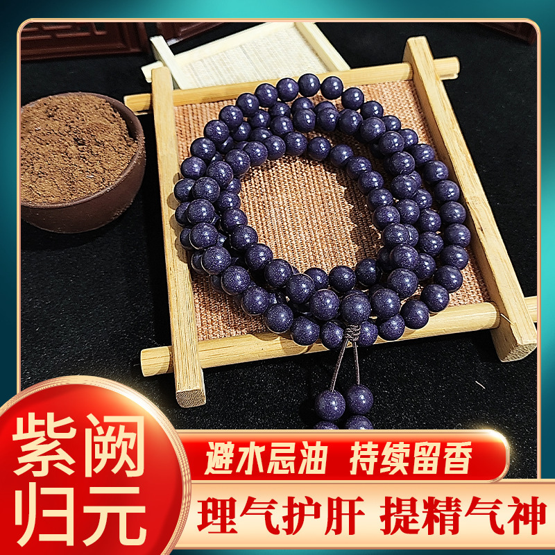 無形文化遺産古代手作り香ビーズブレスレット紫気東来天然薬用香ビーズ解消憂鬱紫手持ち