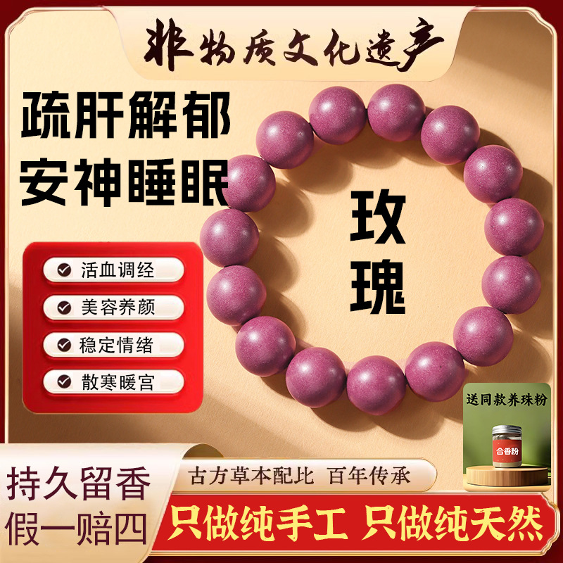 疏肝解郁玫瑰合香珠中药手串非遗手链手工精磨3000目送女朋友礼物