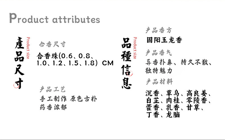 颜色 五行手串108颗,清神至宝108颗,复元通气108颗,紫阙归元108颗,固本万灵香108颗,固阳玉龙香108颗