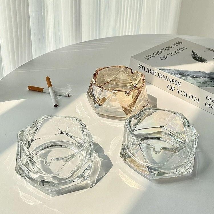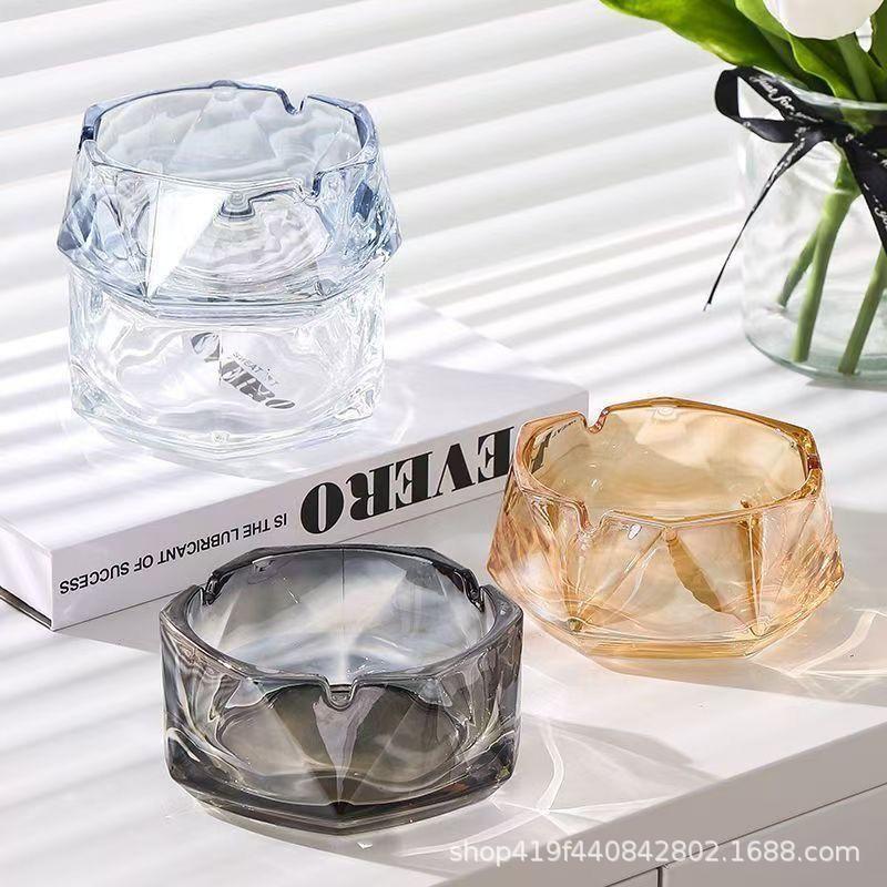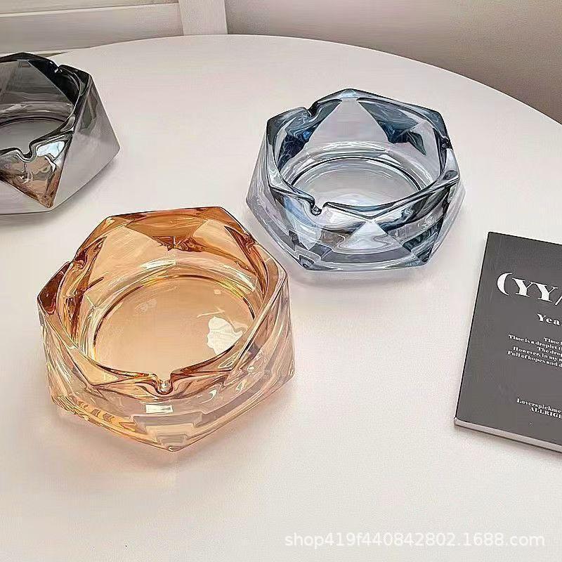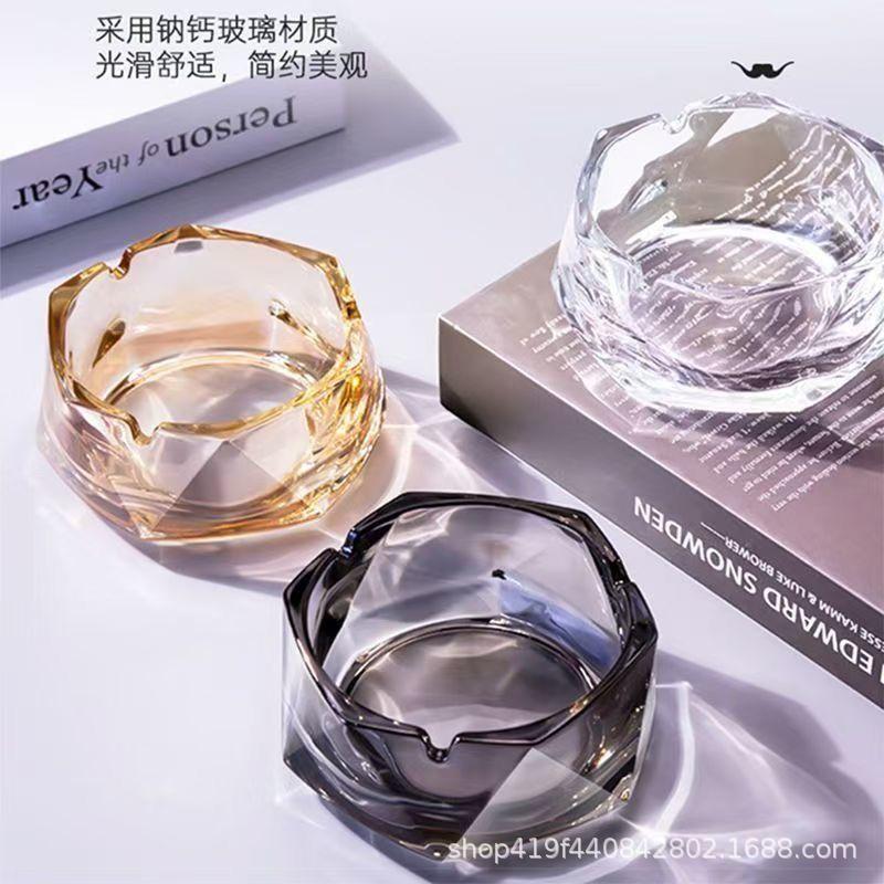 新款水晶玻璃抖音网红烟灰缸ins高颜值客厅茶几办公室酒店烟缸
