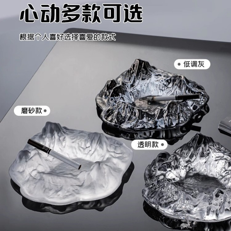 玻璃烟灰缸办公室创意个性烟缸家用灰缸高级感客厅轻奢冰山烟灰缸
