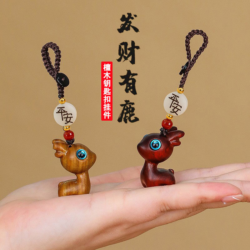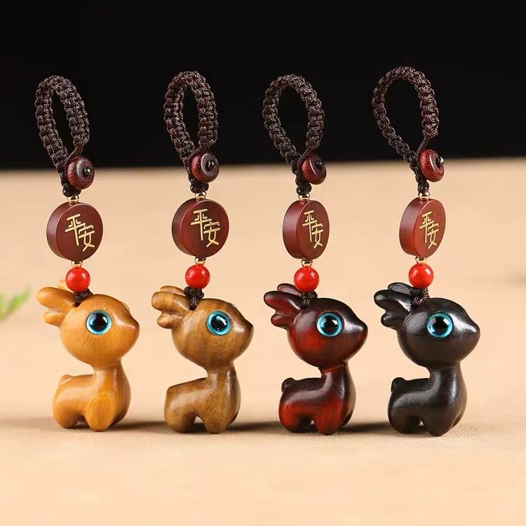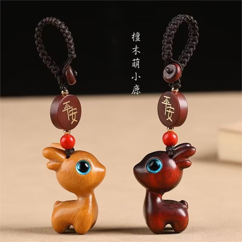 クロスボーダーの平安檀木のペンダントの鹿のキーホルダーの自動車のペンダントのかわいいカップルの携帯チェーンのペンダント