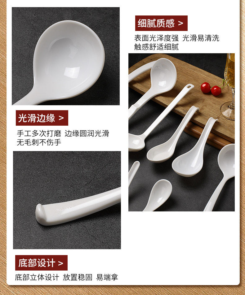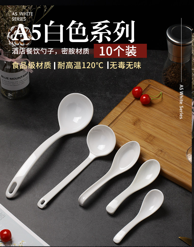 白いメラミンスプーン商業小さなスプーンプラスチックロングハンドルスプーンホテルスパイシーソップケータリングスプーン模造磁器