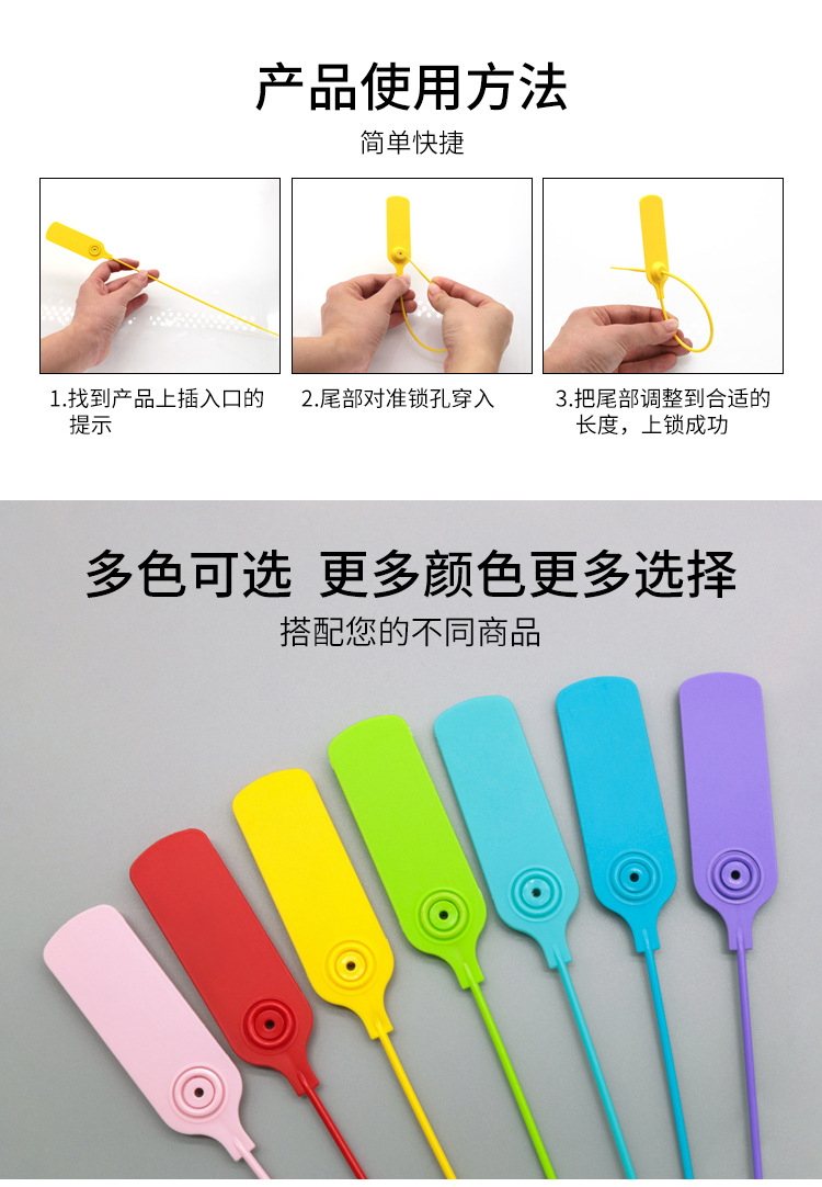 使い捨てプラスチックシール、偽造防止タグ、衣類用バックル、返品防止バックル、バッグタグ、改ざん防止バックル、靴用盗難防止バックル