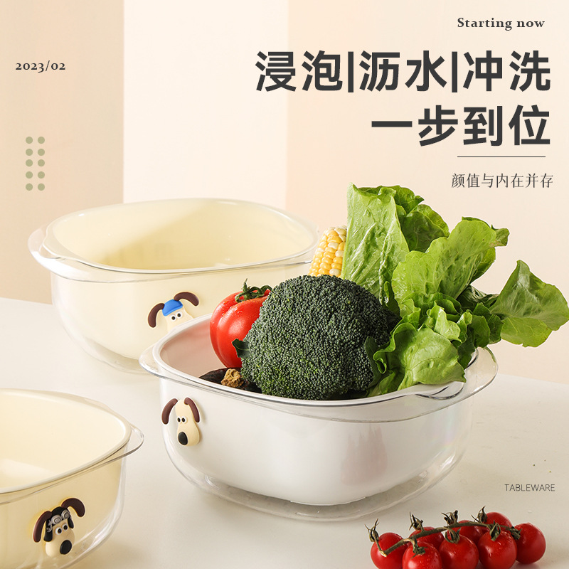 新款沥水篮洗菜盆双层加厚厨房家用洗水果淘米菜篮子滤水盆客厅