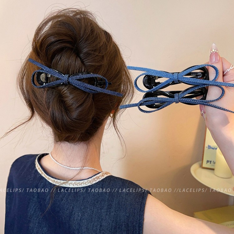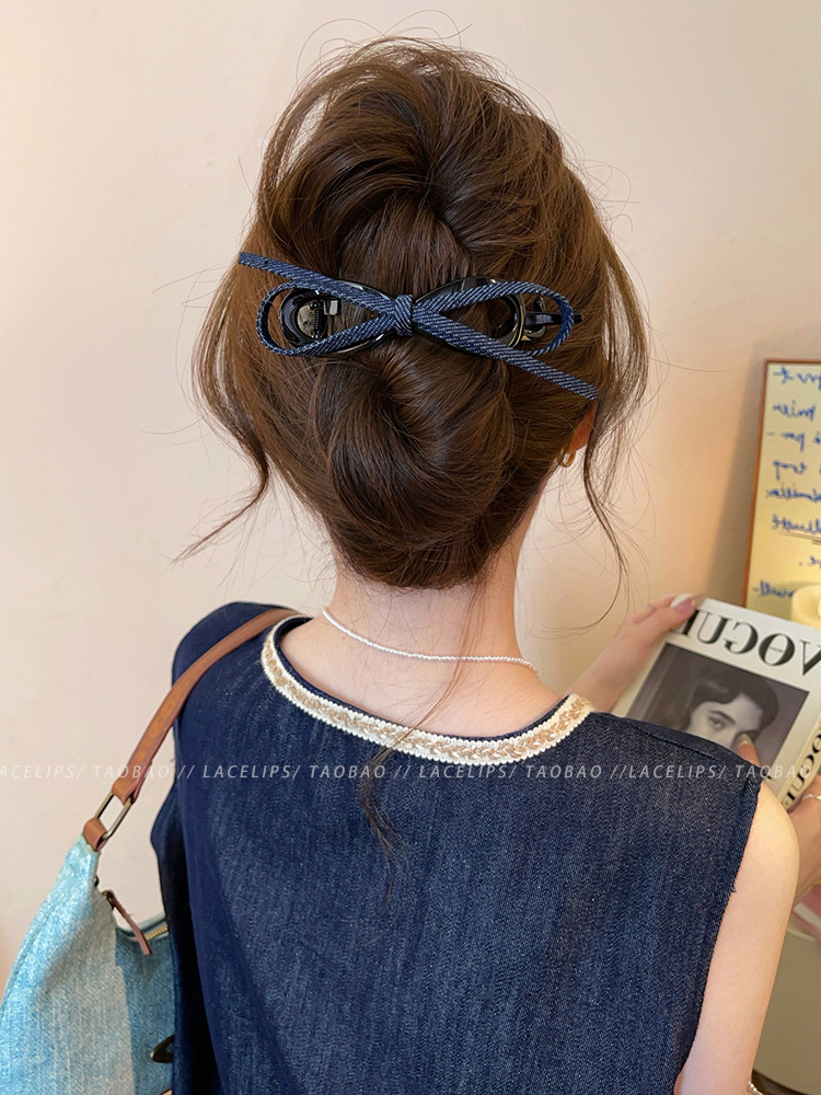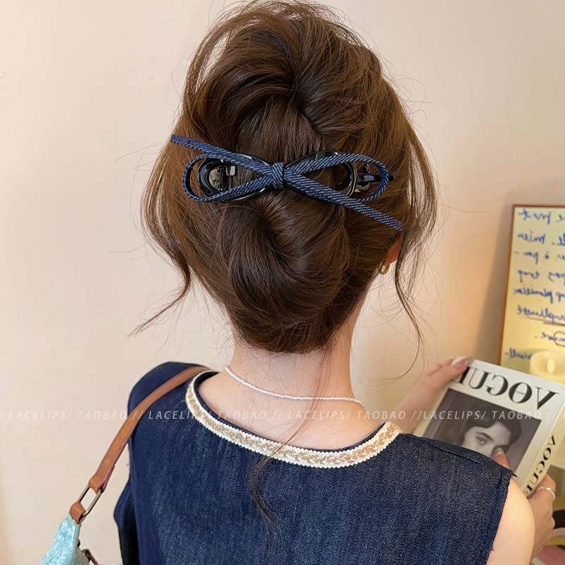 レトロデニムリボンツイストクリップ女性のハイエンド 2025 新しいワンラインヘアクリップ後頭部ヘアクリップヘアアクセサリー