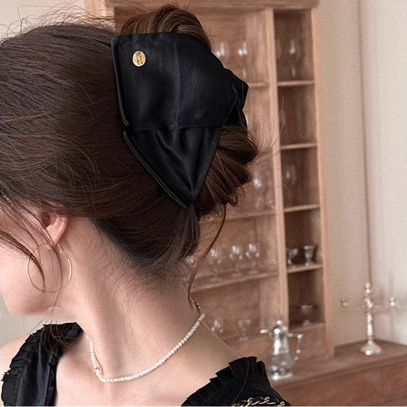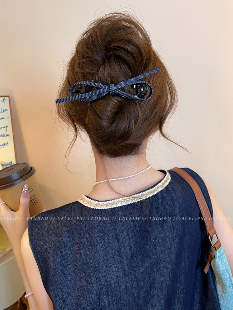 韓国風おしゃれデニムリボンヘアピン、シンプルで高級感のある後頭部の大きなカモノハシピン、甘いリボンヘアピン