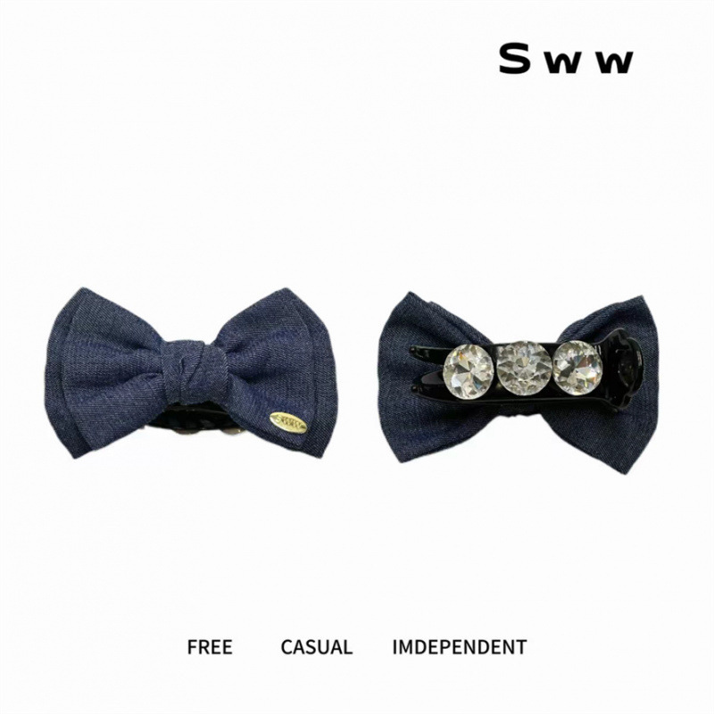SWW 両面 ab 二層デニムリボンダイヤモンドボールヘッドかわいいヘアピン気質後頭部ヘアピン