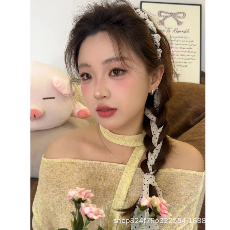 カチューシャがアップしました! 新商品の波点のリボンの軽いシフォンの歯の櫛のカチューシャの高い頭の頂の甘い妹の麻花のお下げ