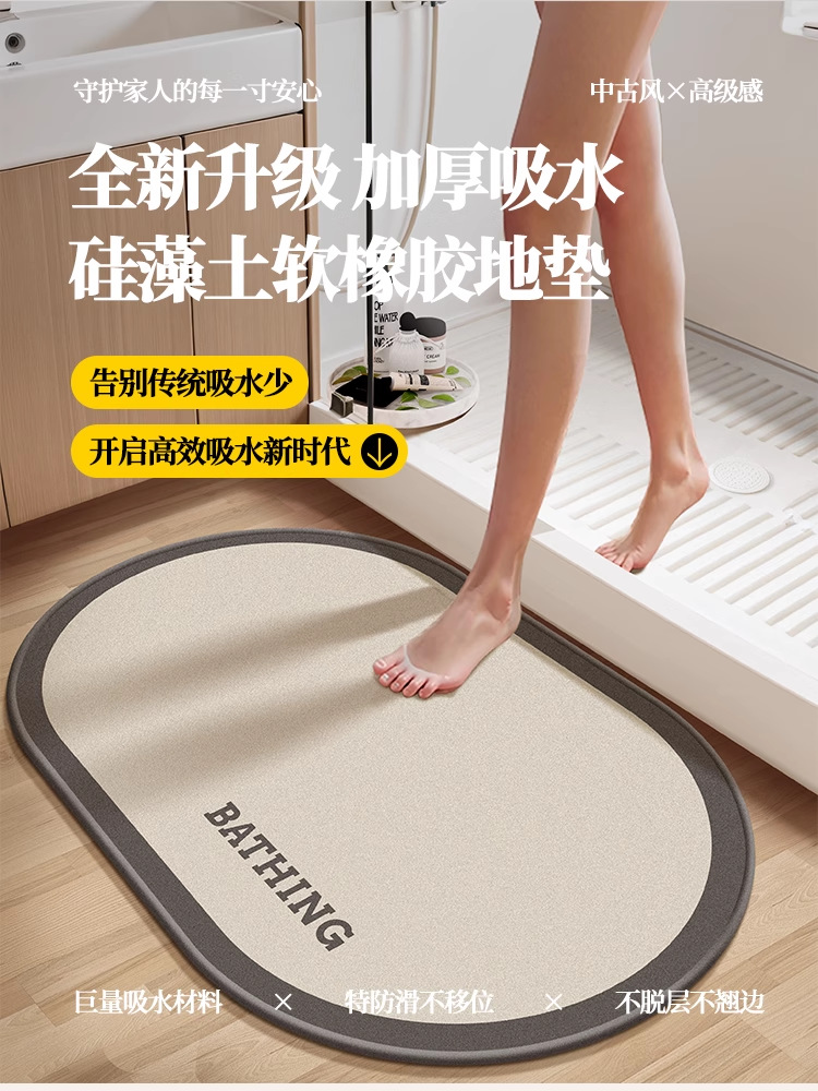 現代のシンプルな珪藻泥マットトイレ吸水速乾足マット家庭用滑り止め浴室マット