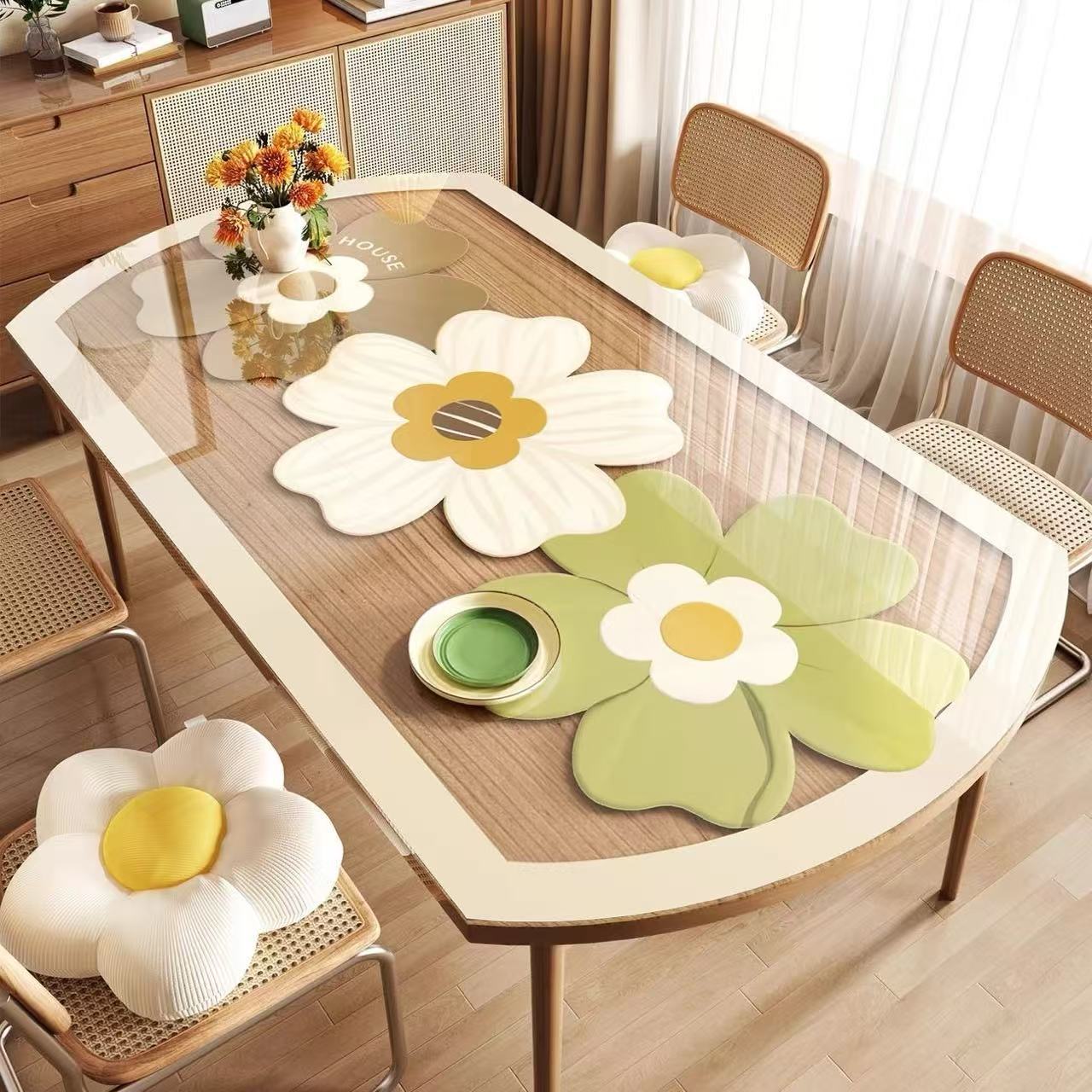 テーブルクロスインスタイル防水、耐油、火傷防止 PVC プラスチック透明軟質ガラスフラワーオーバルコーヒーテーブルダイニングテーブルマット