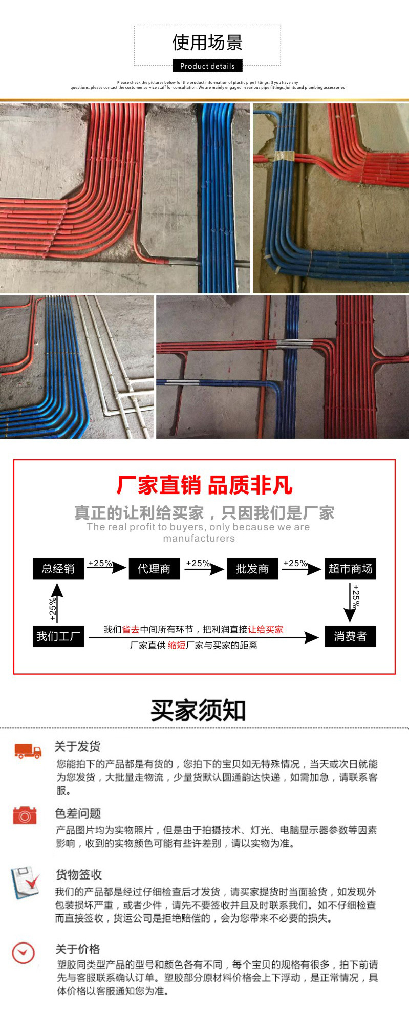 メーカー直販pvc国標直接線管直接線管継手厚さプラス赤青白線管直接線管