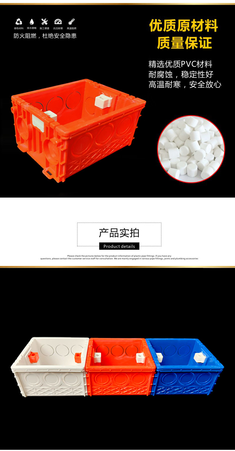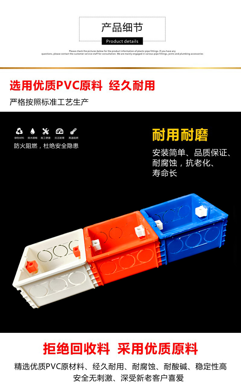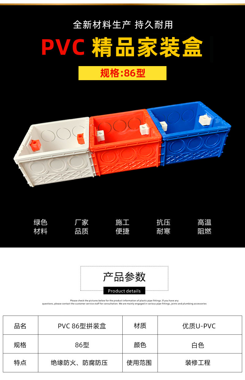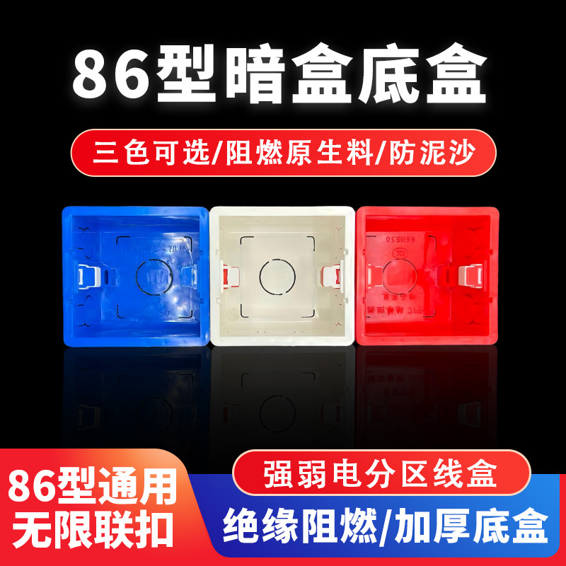 Pvc86型シームレス組立ケース厚手スイッチコンセントカセットカセット底箱ホームインタイプ赤青白ダークボックス