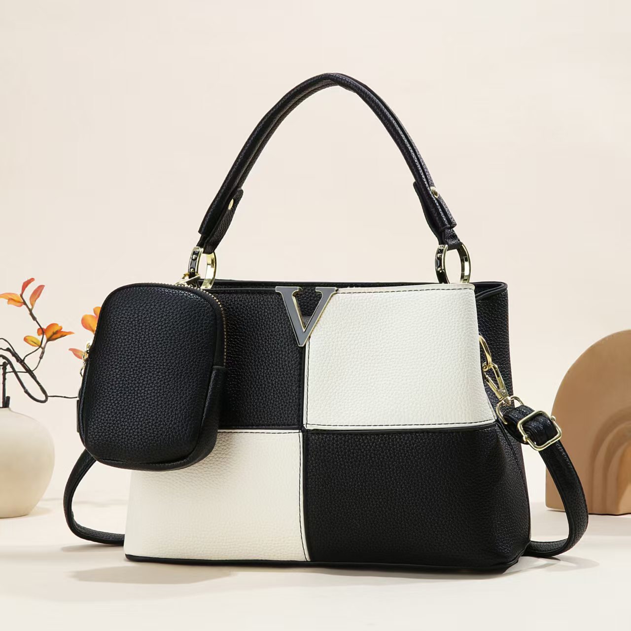 时尚通勤手提潮流新款撞色拼接简约大气质感单肩斜挎女士水桶小包