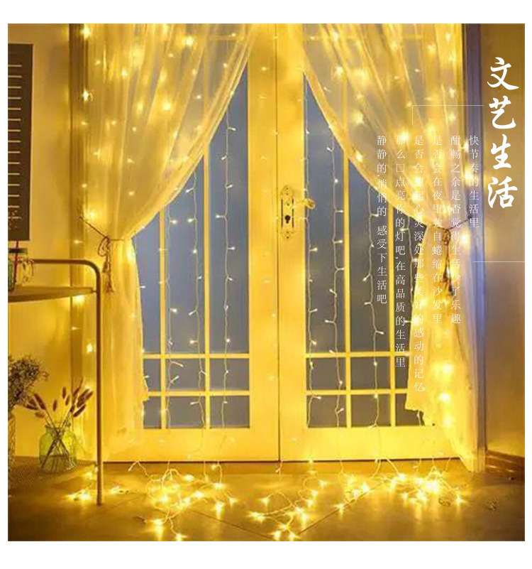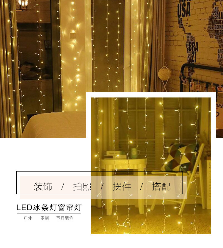 led窗帘灯串3*3米瀑布满天星冰条灯装饰户外防水阳台布置氛围串灯