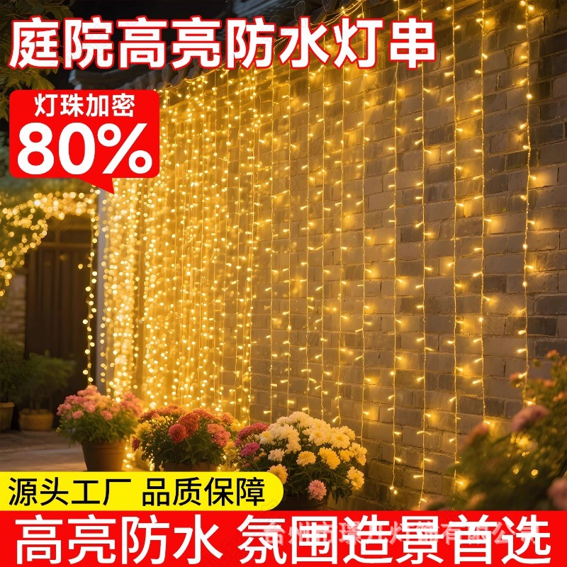 新款led网红星空瀑布灯户外防水防晒流水灯婚庆庭院氛围装饰彩灯