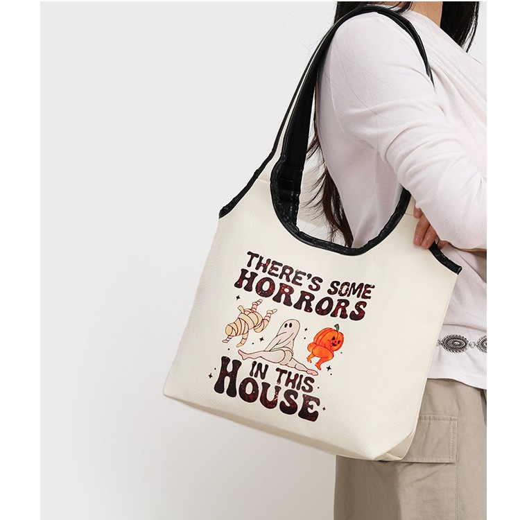 ポータブルキャンバスバッグレディースショルダー脇の下ショルダーバッグホワイトミニハイエンドライトラグジュアリーホットガールハロウィンパンプキンバッグ