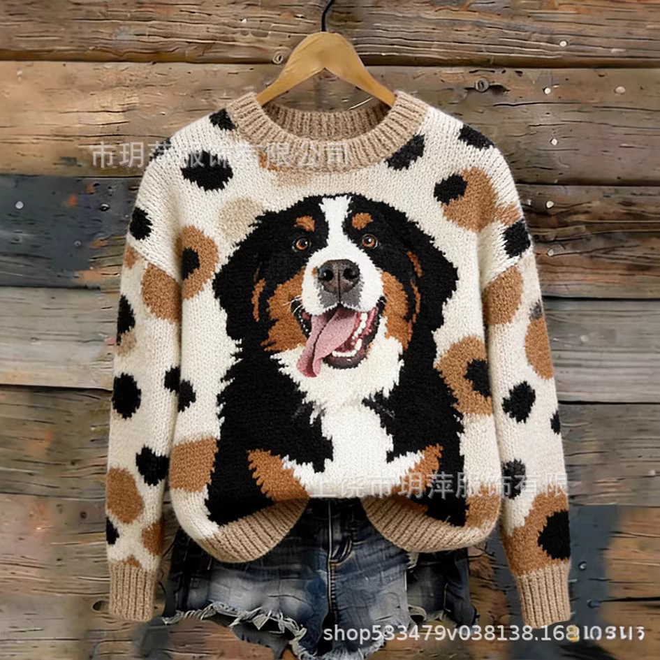 新款跨境独立站亚马逊3D数码印花猫咪圣诞节女士圆领卫衣秋冬