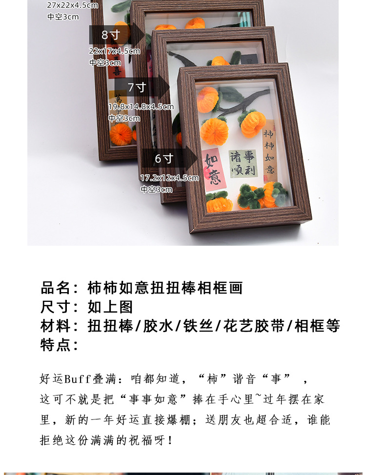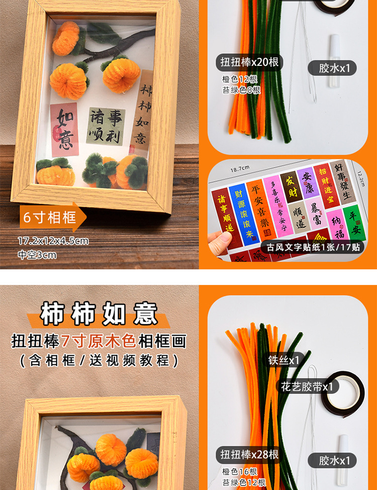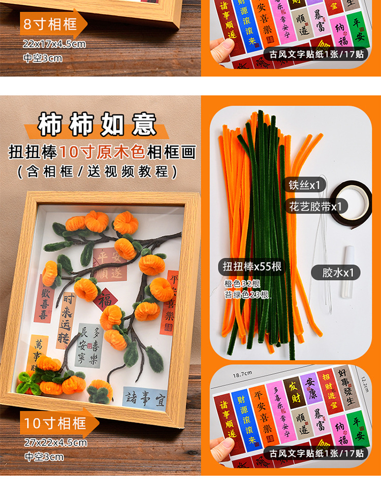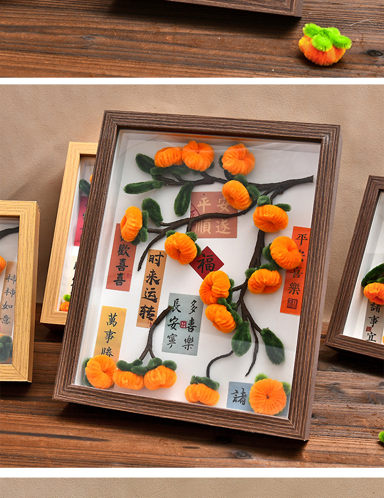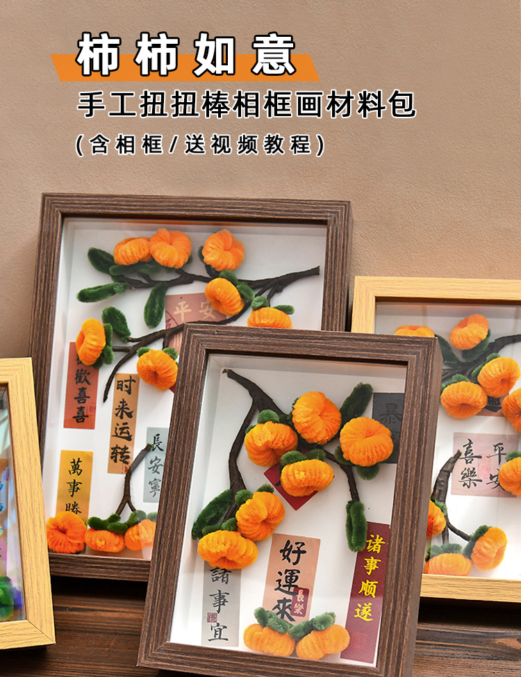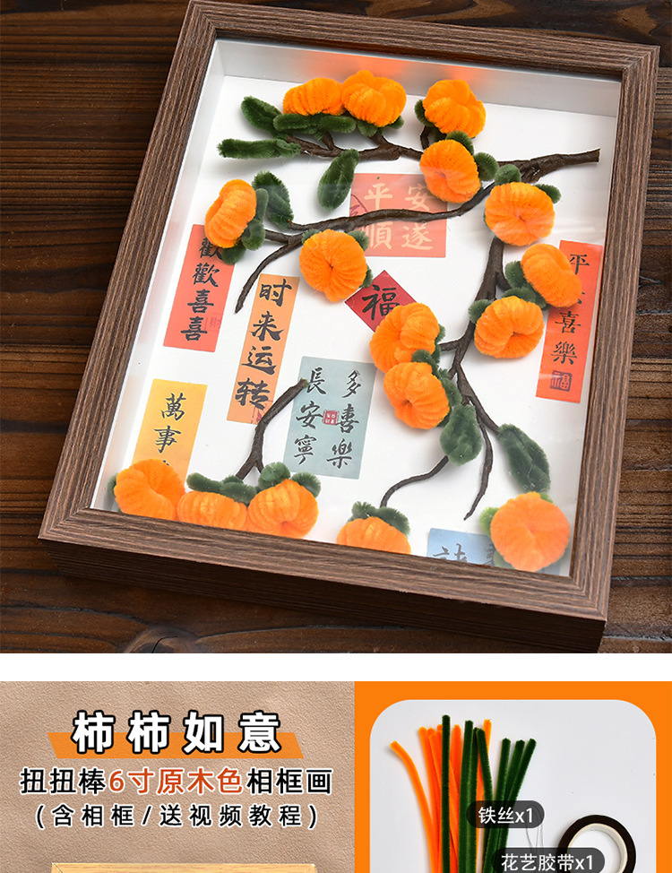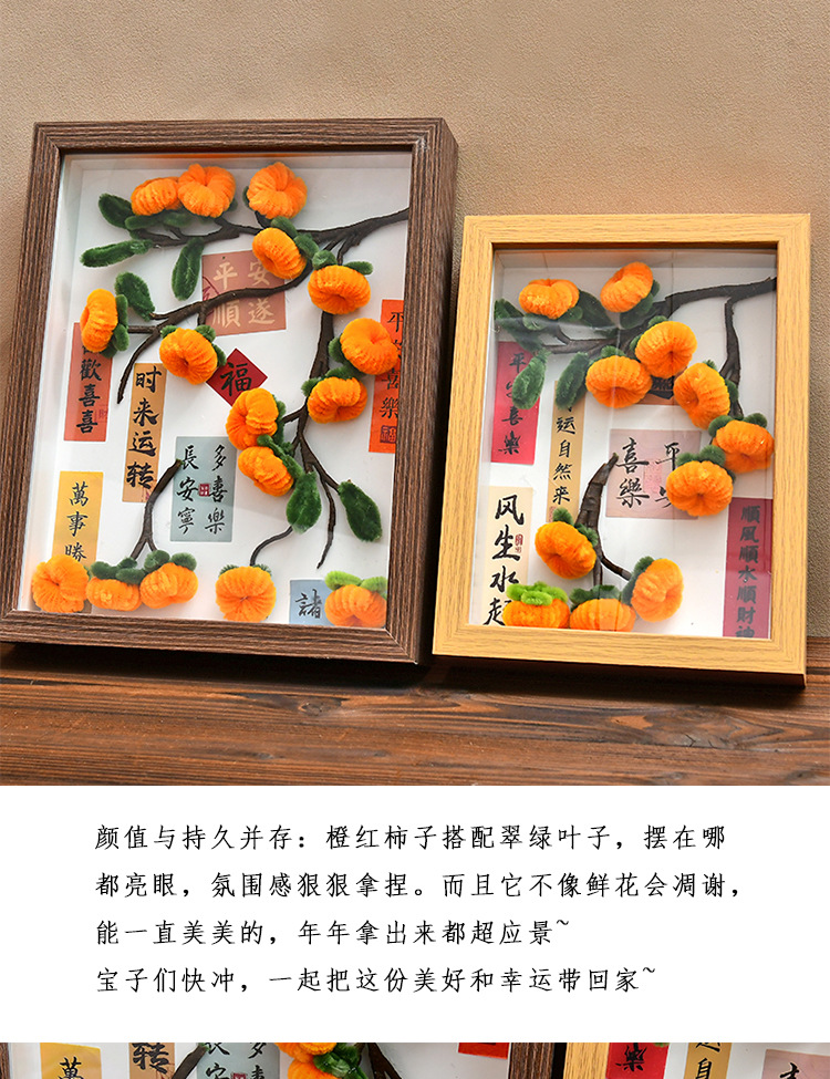 新年柿柿如意手工diy扭扭棒相框材料包柿子树摆件沙龙活动礼品