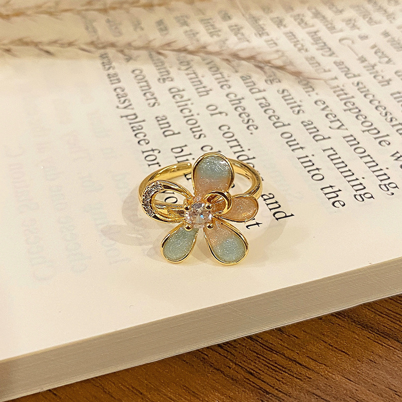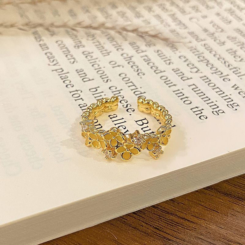「ベリーパウダーフラワーシリーズ」クリームスイートガールスタイルフラワーオープンリングレディースファッション絶妙なニッチ多用途外国風リング