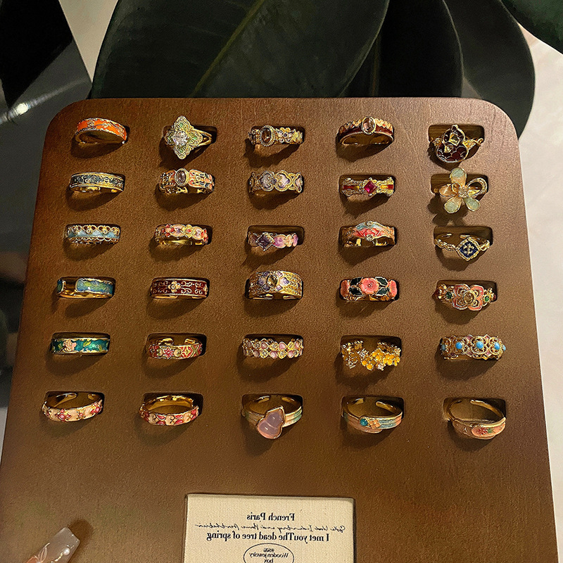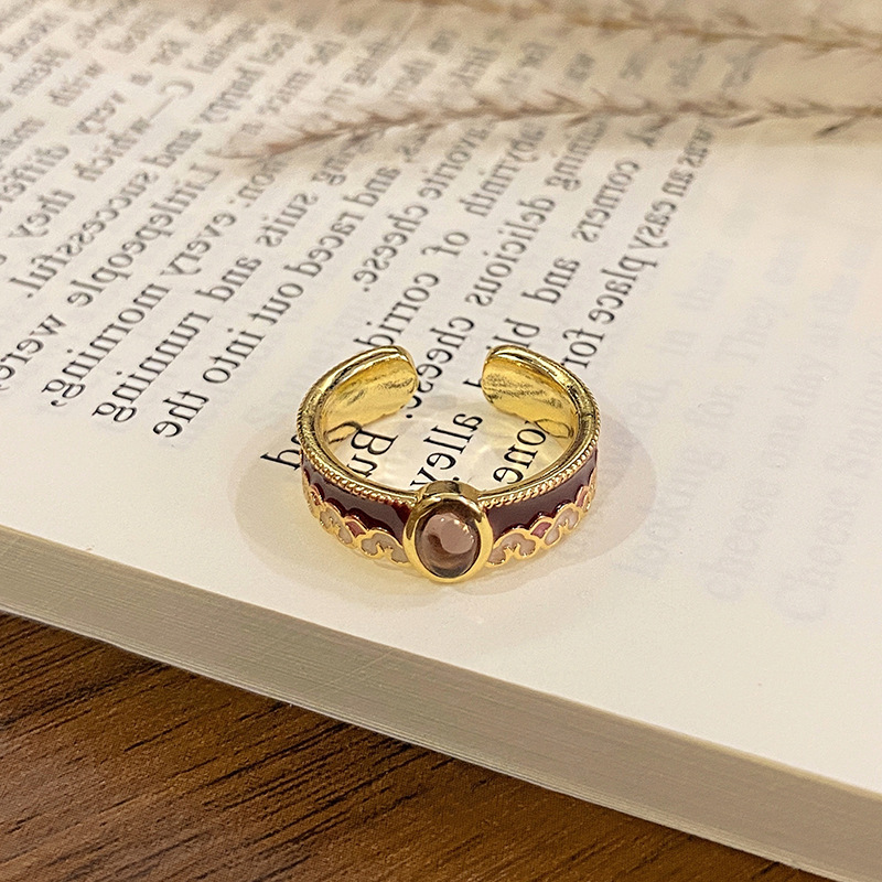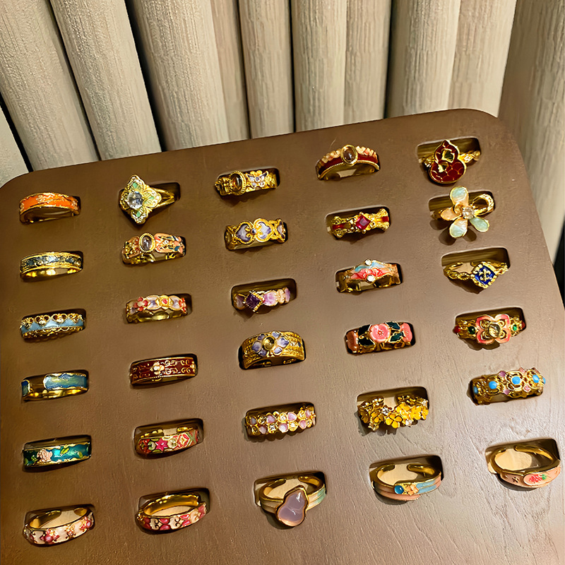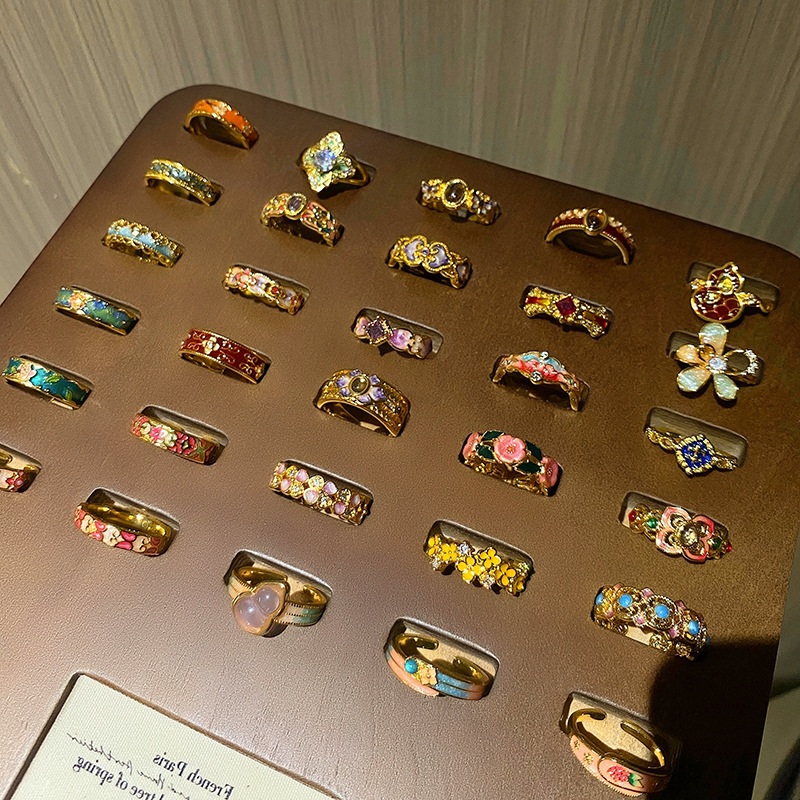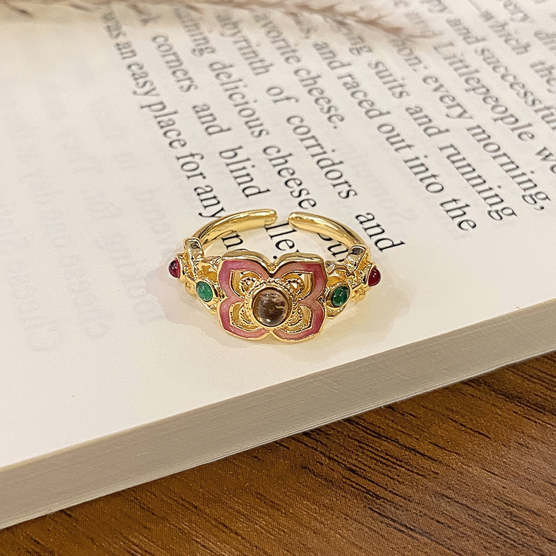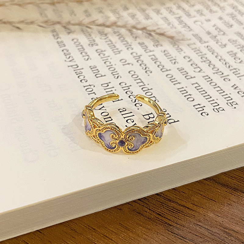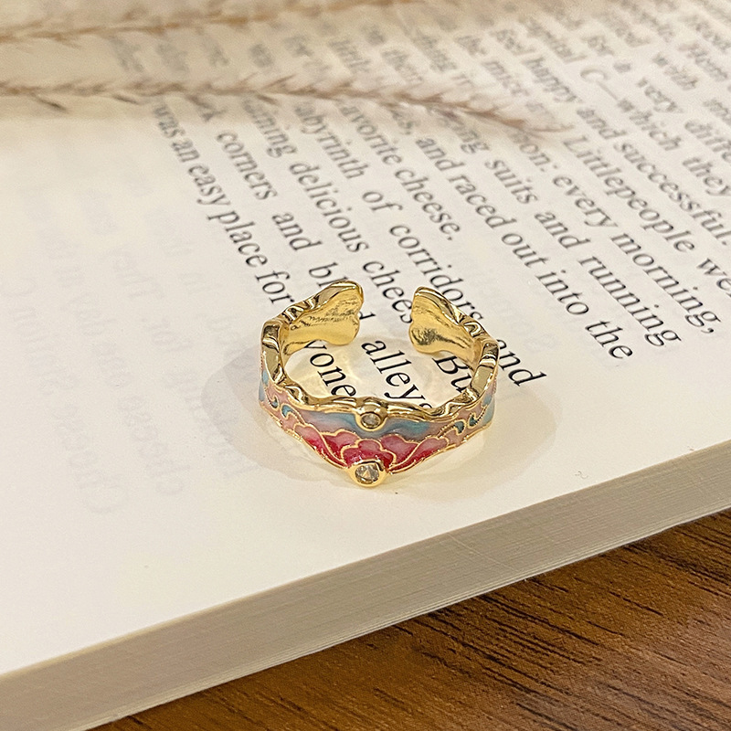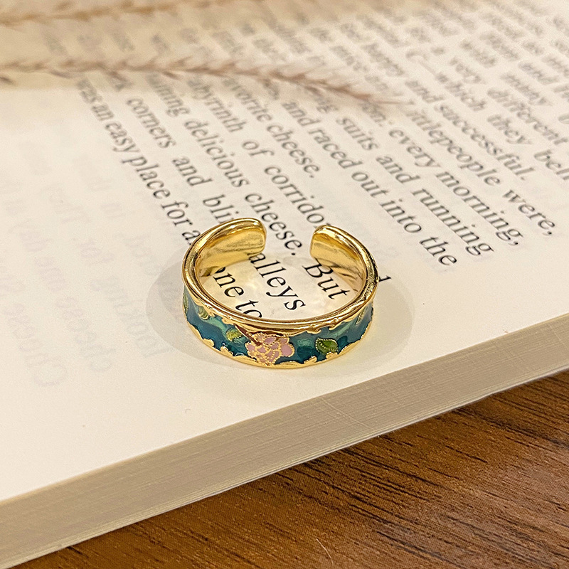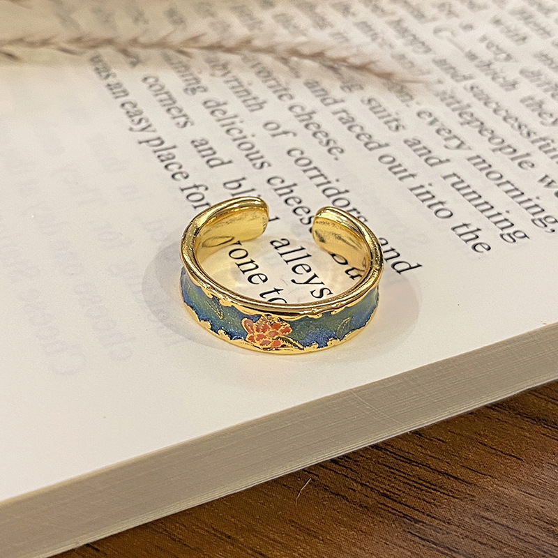 「谜失花蕾」新中式珐琅滴油花纹戒指轻奢高级感网红洋气百搭指环