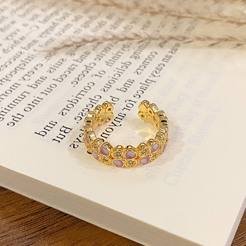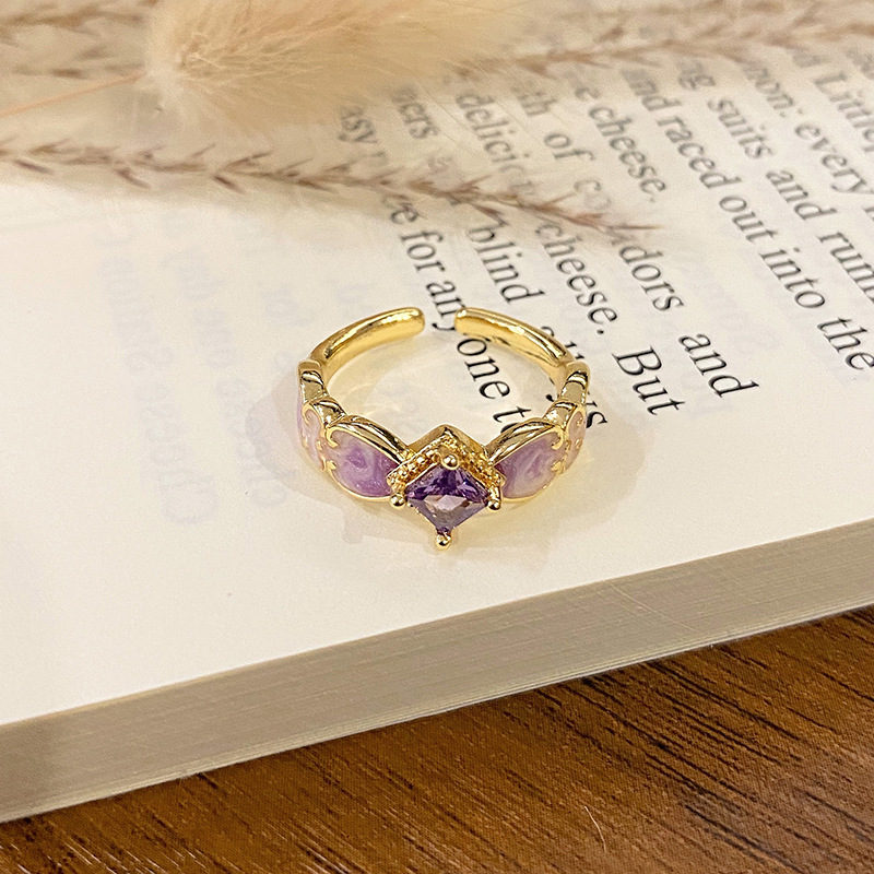 ライトラグジュアリー、甘くてクールな幾何学的なパープルダイヤモンドオープンリング、女性用ニッチデザイン、クールなスタイル、ファッショナブルな個性、絶妙な人差し指リング
