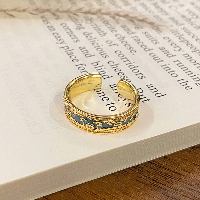 ヴィンテージ風ヴィンテージ〜高級質感レトロ柄ワイドバージョンリングレディースニッチデザインライトラグジュアリー調節可能