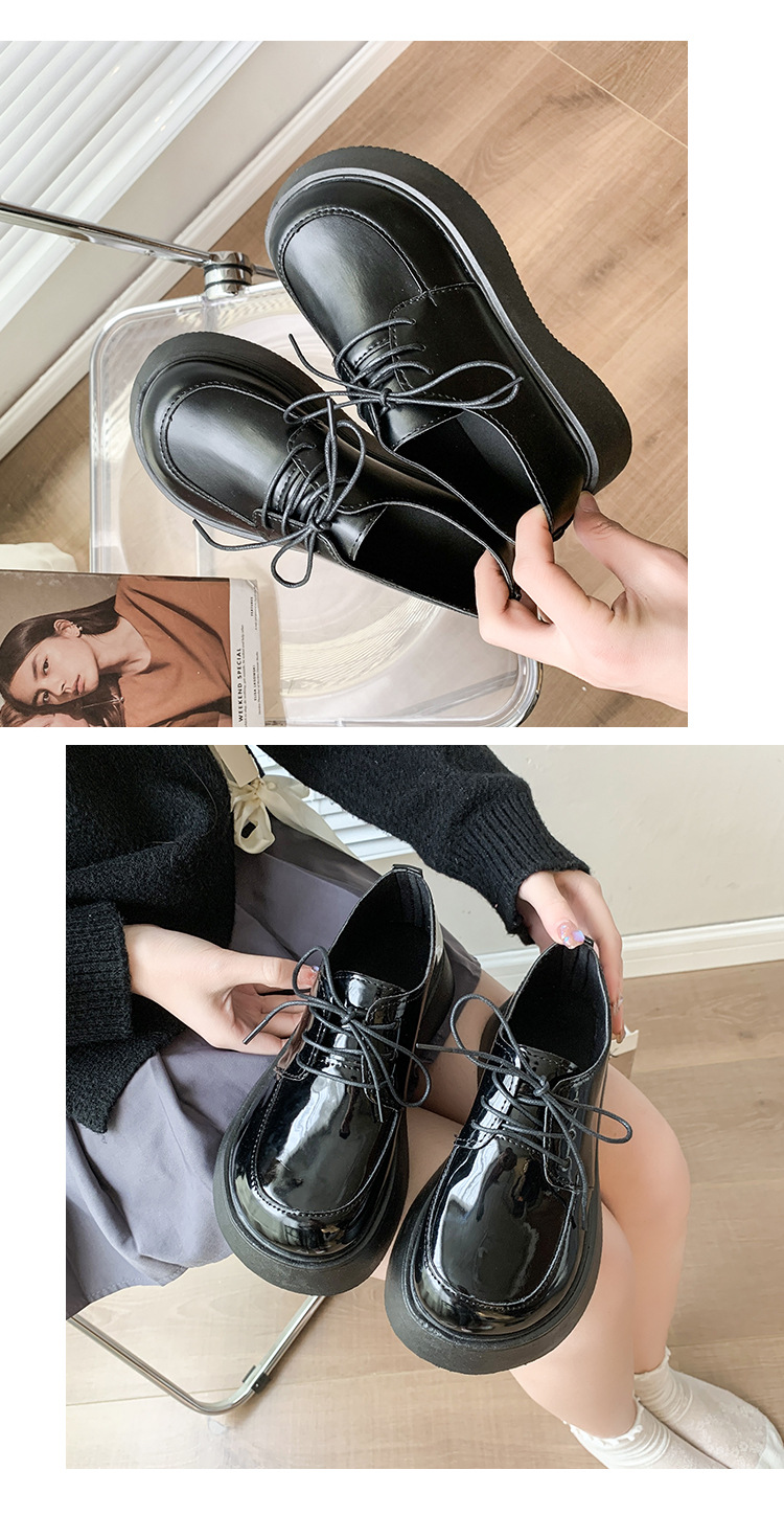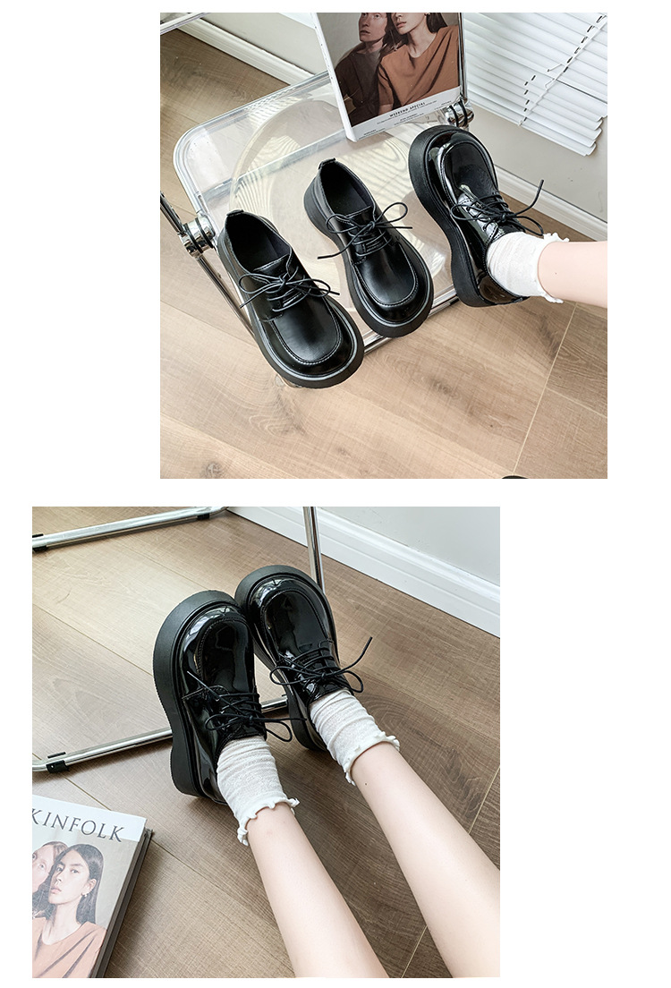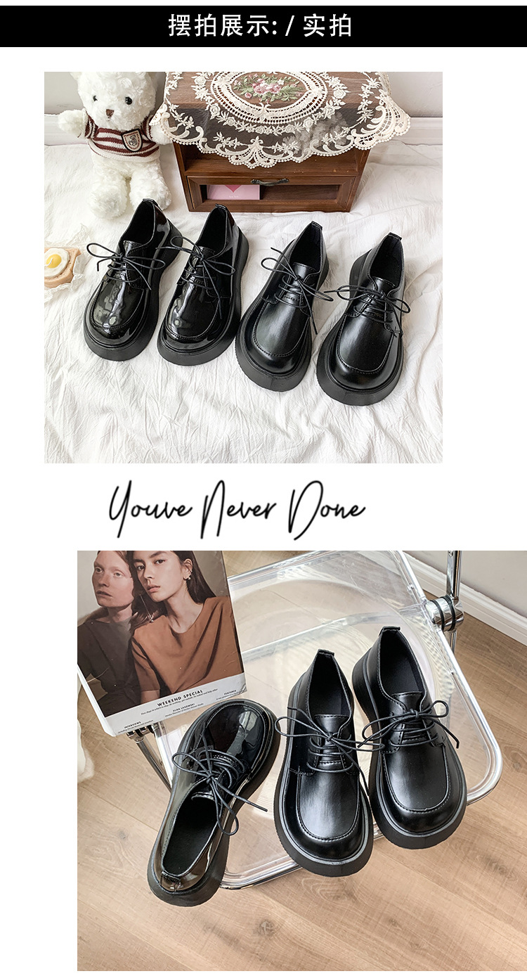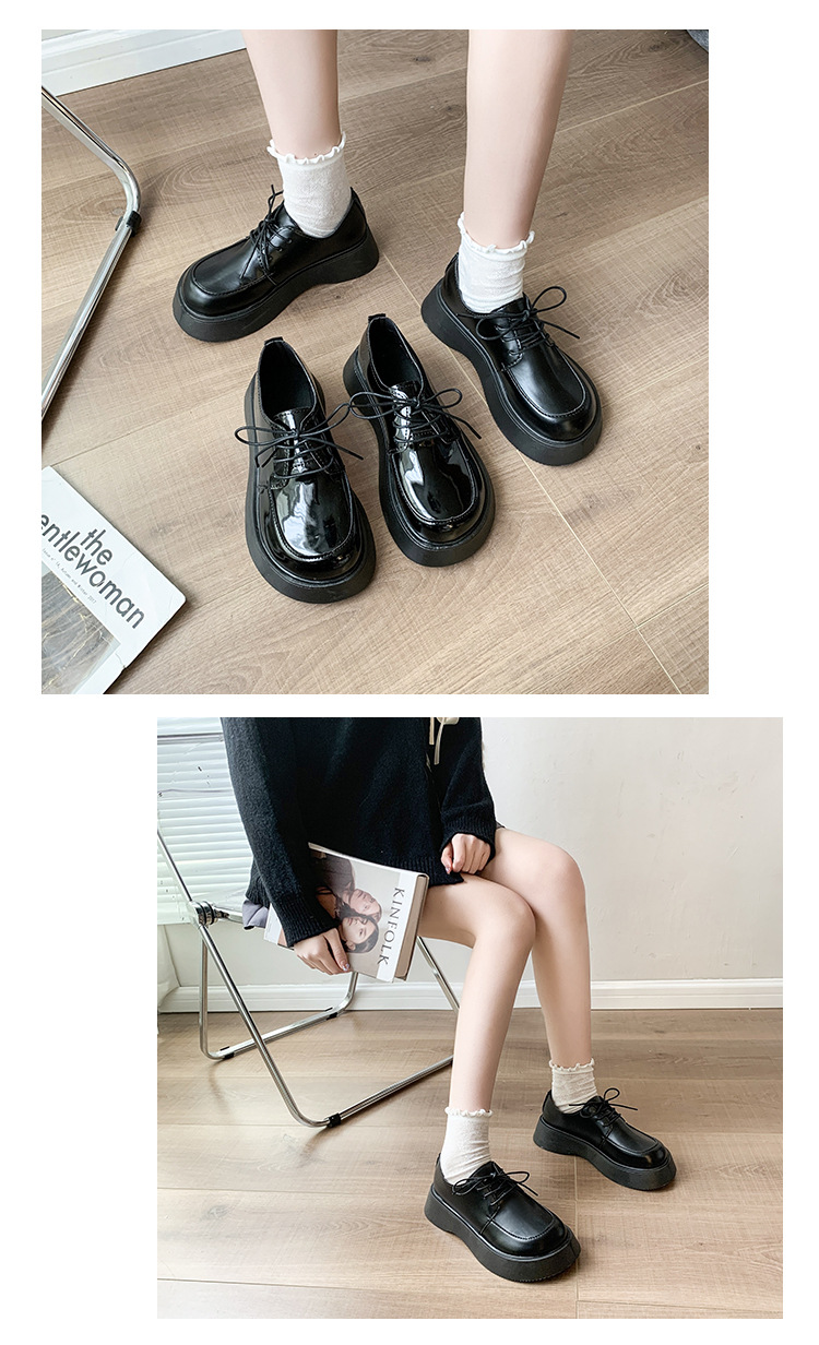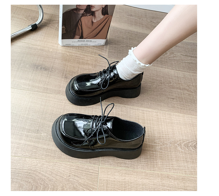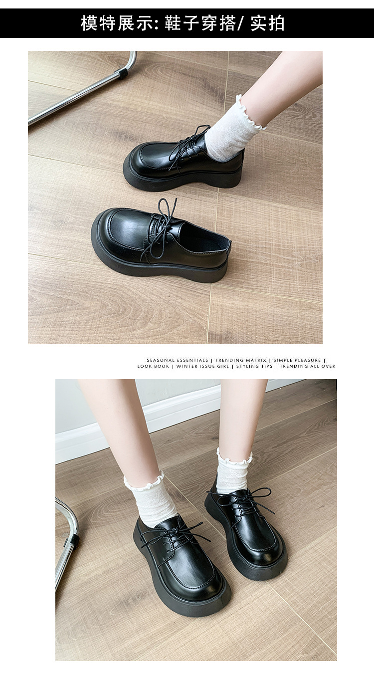 黒の多用途英国スタイルのレトロな厚底小さな革靴 2025 夏の新しいフランスのアウターウェア高められたラウンドトゥの靴
