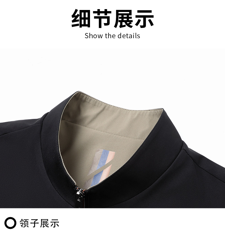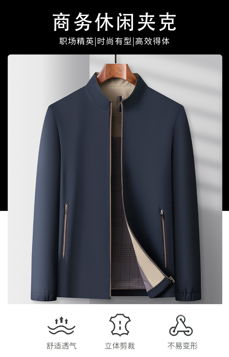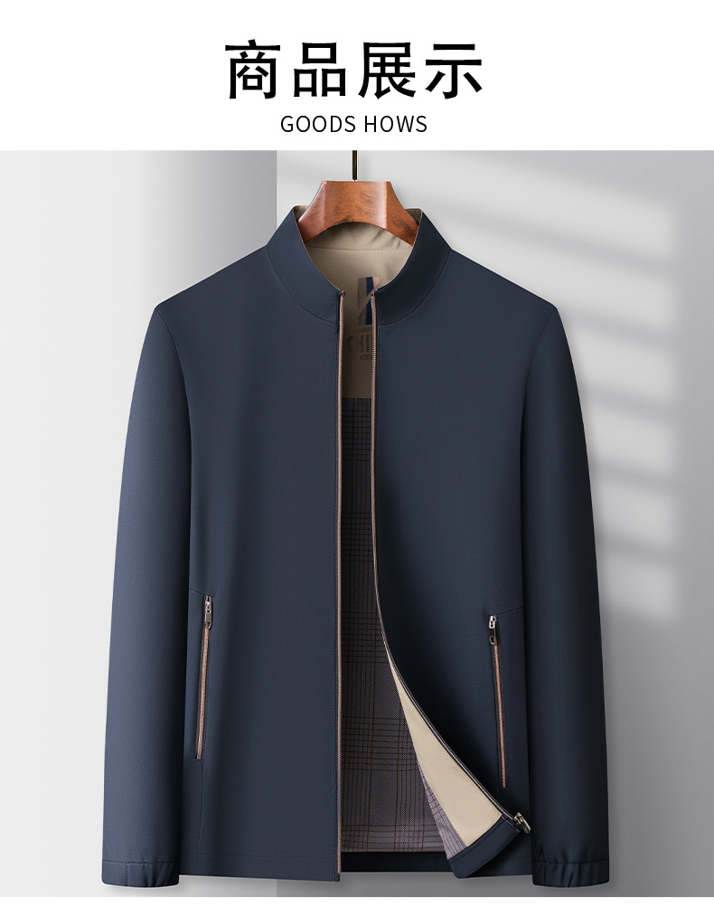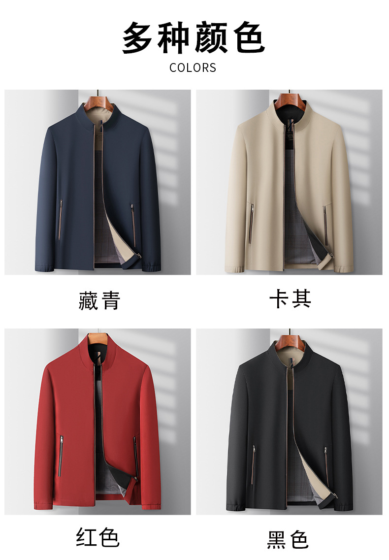 商务休闲男士春秋新款拉链上衣服中年爸爸装立领外套纯色夹克衫