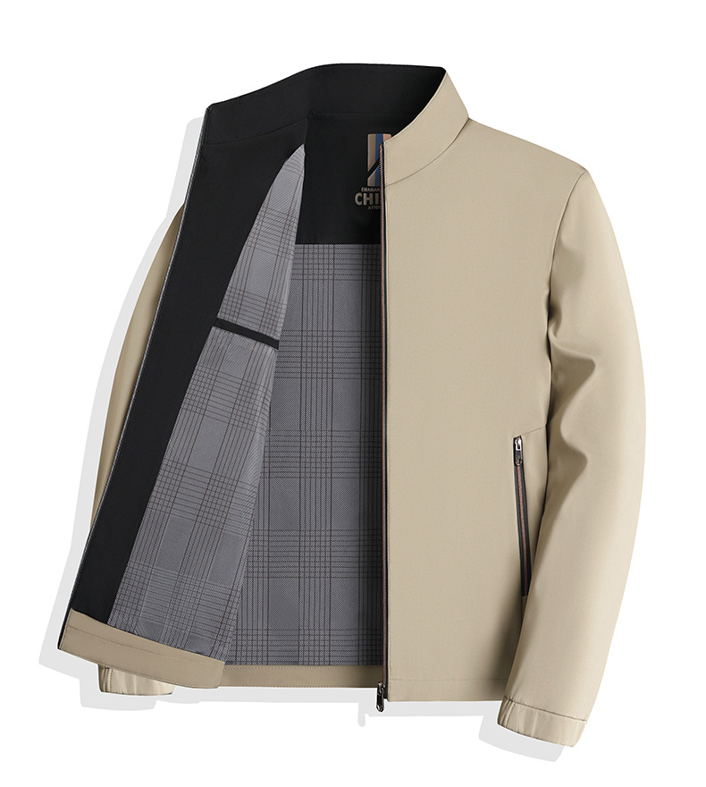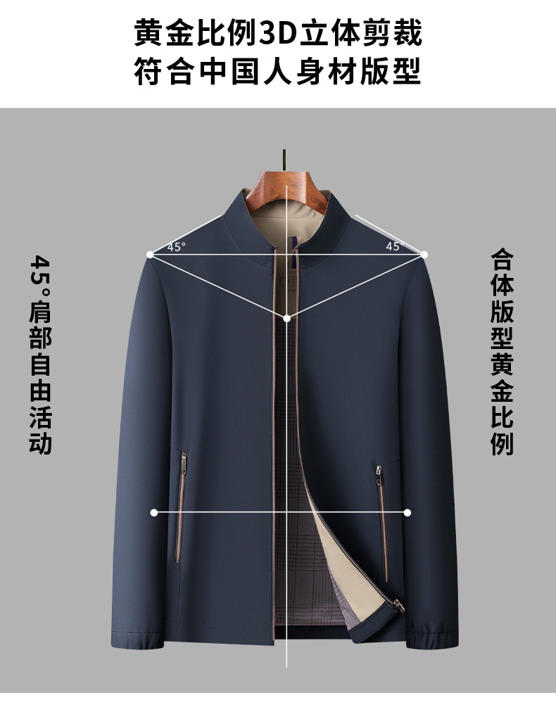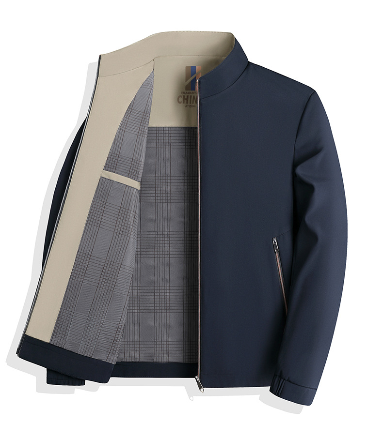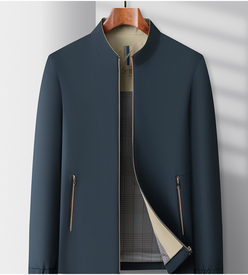商务休闲男士春秋新款拉链上衣服中年爸爸装立领外套纯色夹克衫