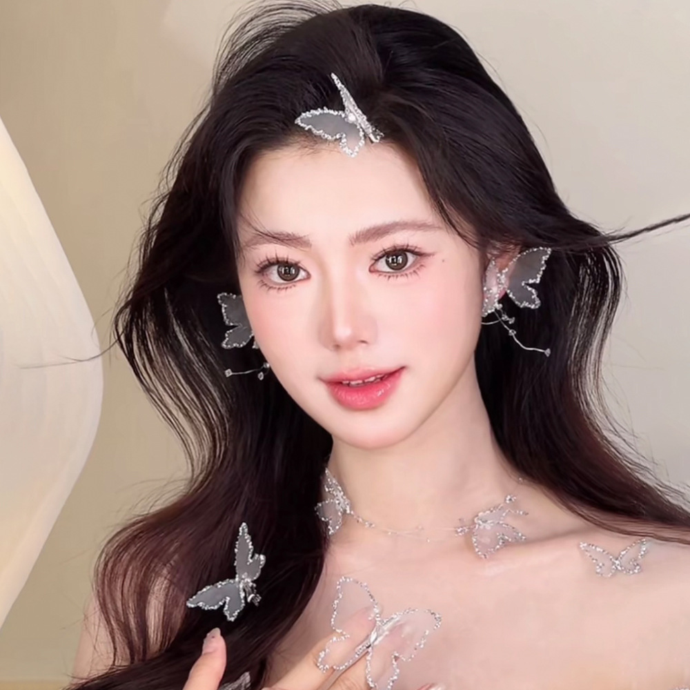 2025原创手工新款森系红色蝴蝶发夹仙气发饰简约边夹结婚新娘头饰