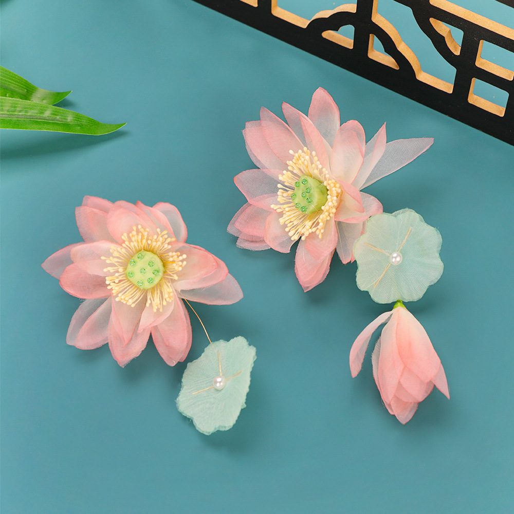 2025 古代スタイルの新鮮な蓮ピンクホットフラワーシルクガーゼ宮殿多用途気質ガールシルクガーゼヘアピンホットフラワーヘアアクセサリー