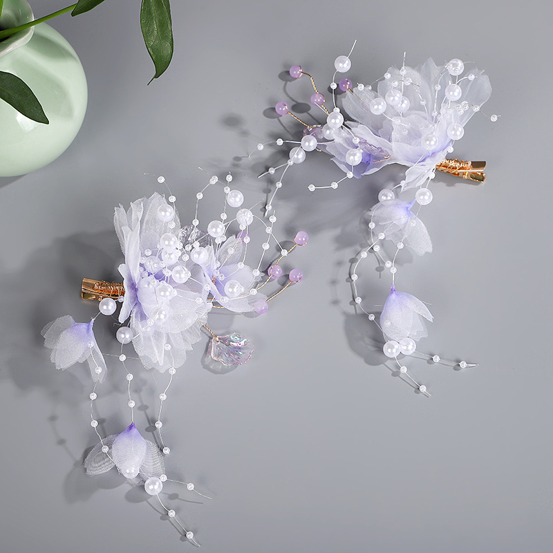 韓国式超仙森系シンプルで精巧な手作りの花のヘアピンの縁に花嫁のウェディングドレスを挟んで結婚します。