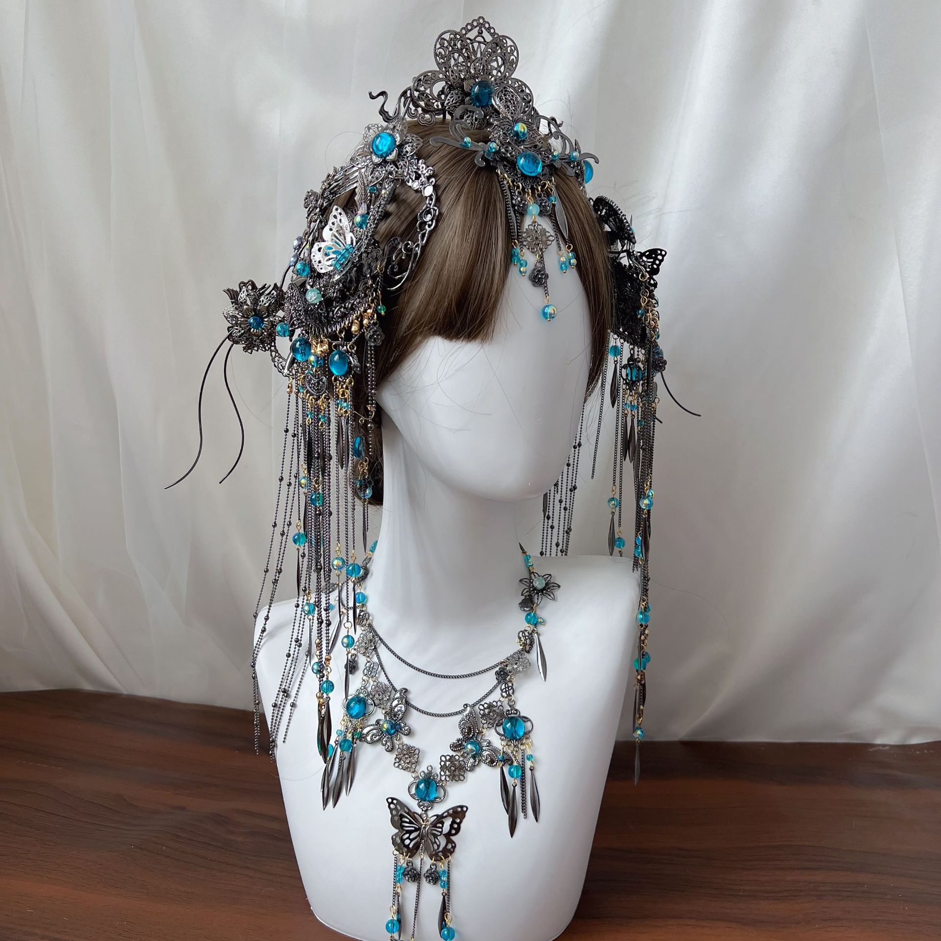 オリジナル古代スタイルの漢服ダークスタイルの妖精セット装飾ヘアピンヘアコーム古典的な女性のエキゾチックなスタイルの頭飾りセット