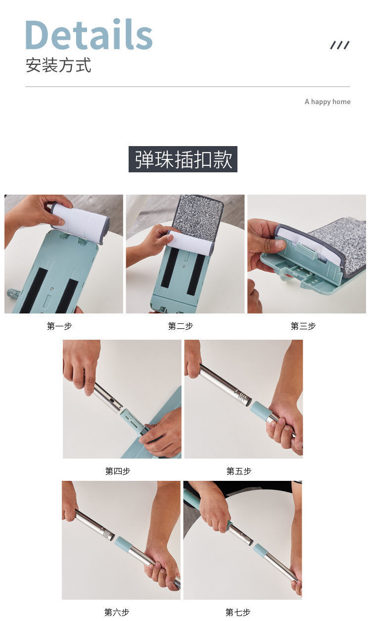 ブレードのフラットモップの部品を回転させてモップの棒を回して、モップの頭を洗ってはいけません。