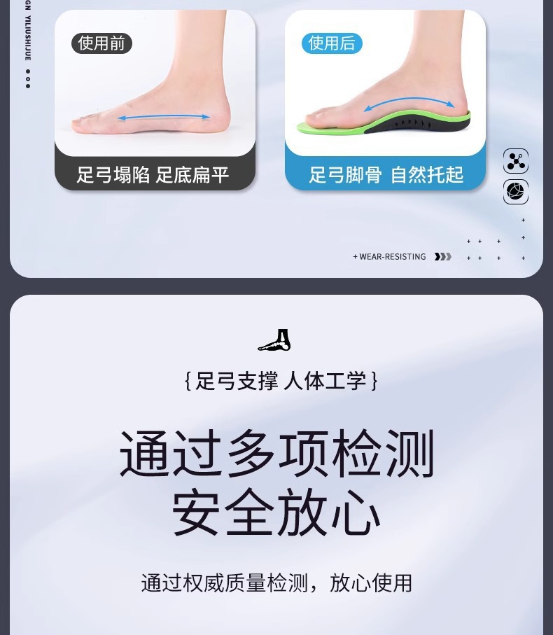 足弓平足弓鞋垫舒适防臭吸汗透气软弹减震运动鞋除臭高弹加厚